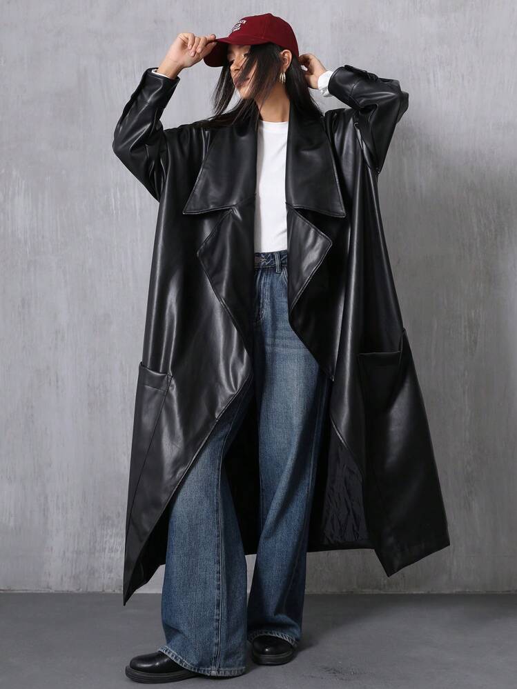 Czarny płaszcz oversize (L)