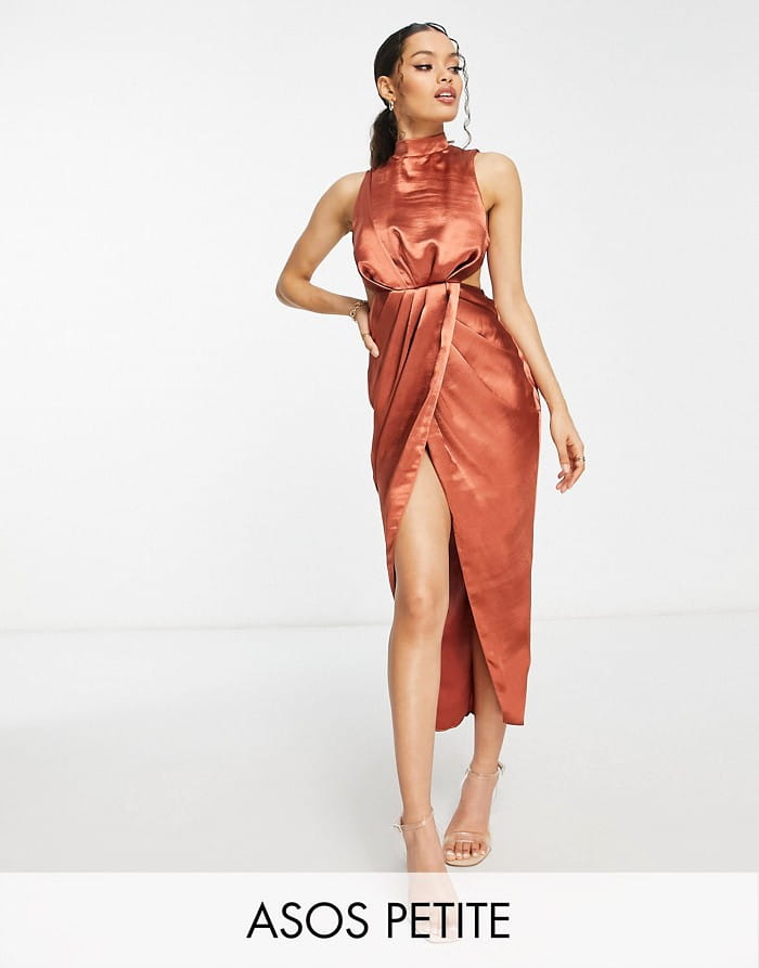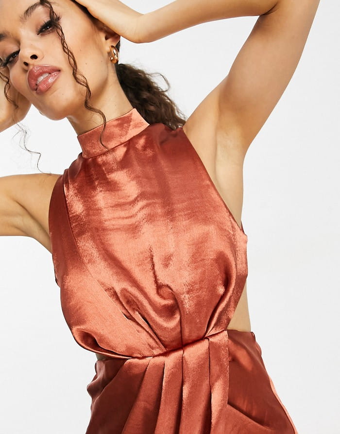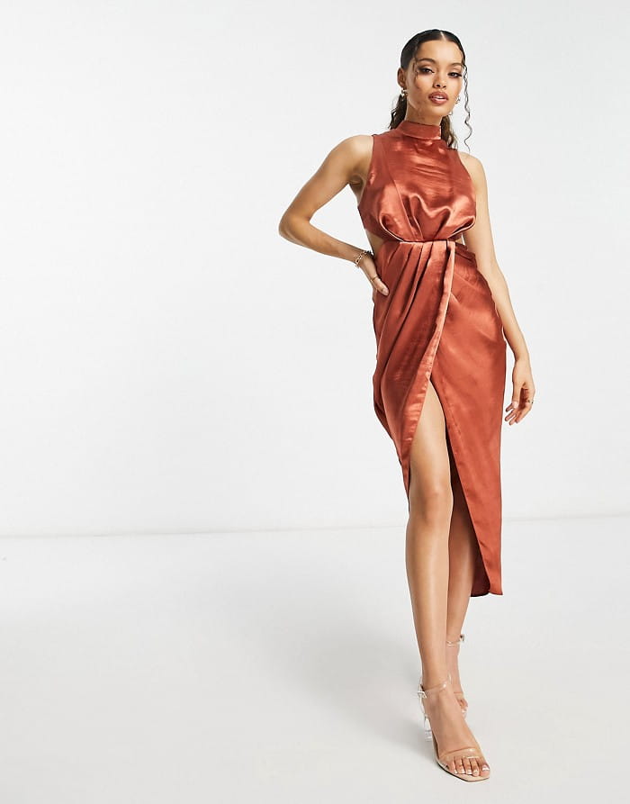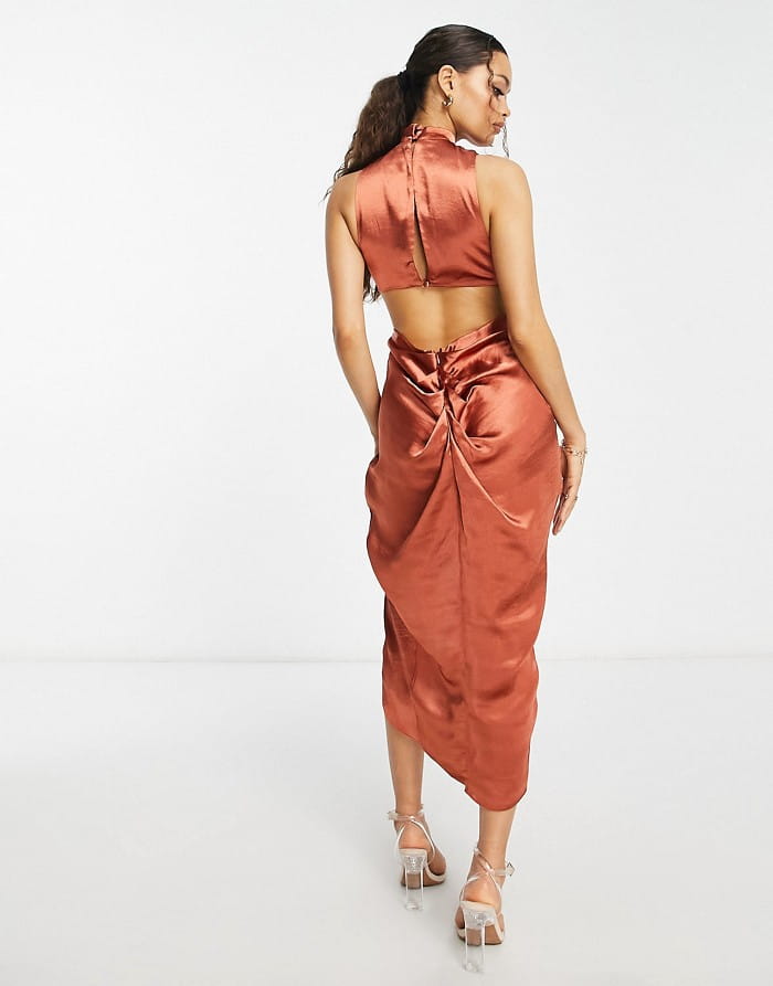 Rdzawa satynowa sukienka midi (34)