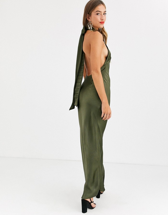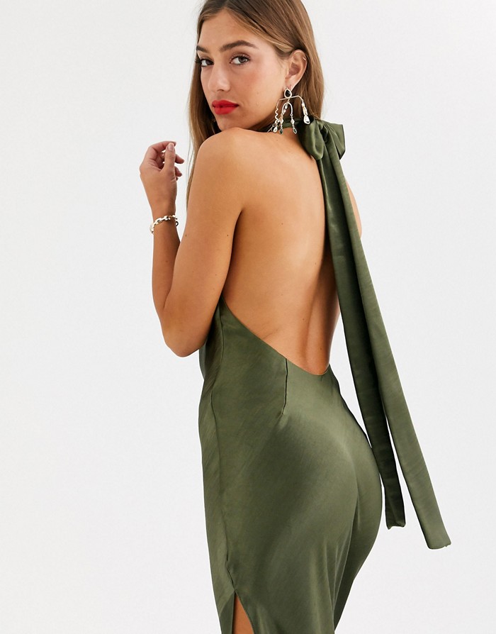 SATYNOWA SUKIENKA KHAKI ROZCIĘCIE (42)
