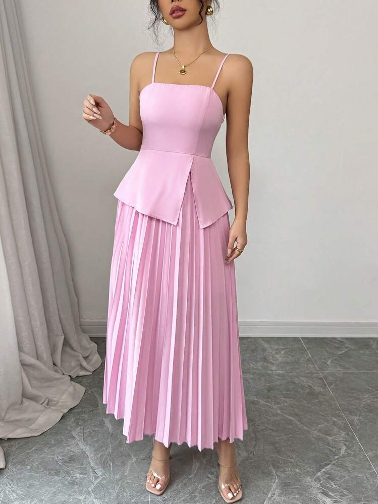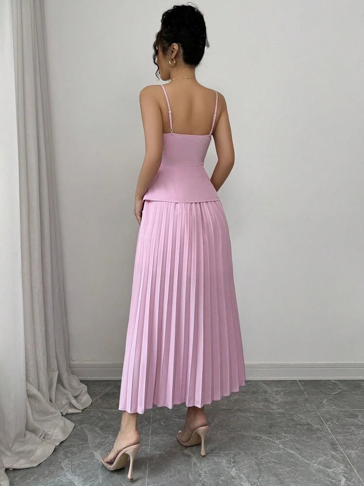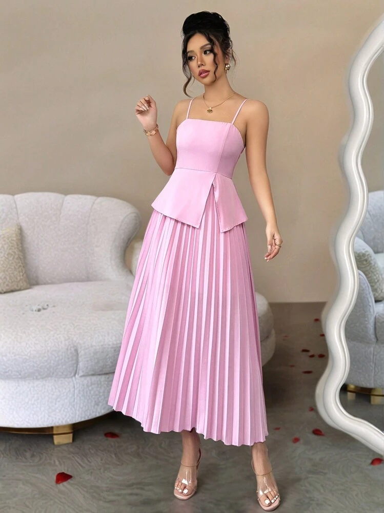Stylowa różowa sukienka midi o plisowanej fakturze, idealna na lato. Możesz ją nosić na wiele sposobów, a prostokątny dekolt i ramiączka dodają jej kobiecego uroku.