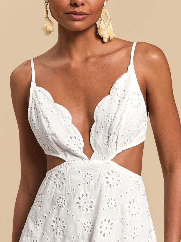 Ta biała sukienka z wycięciami w kształcie dekoltu V jest idealna na letnie wyjścia. Ma ramiączka i delikatny wzór, który nadaje jej romantyczny charakter.