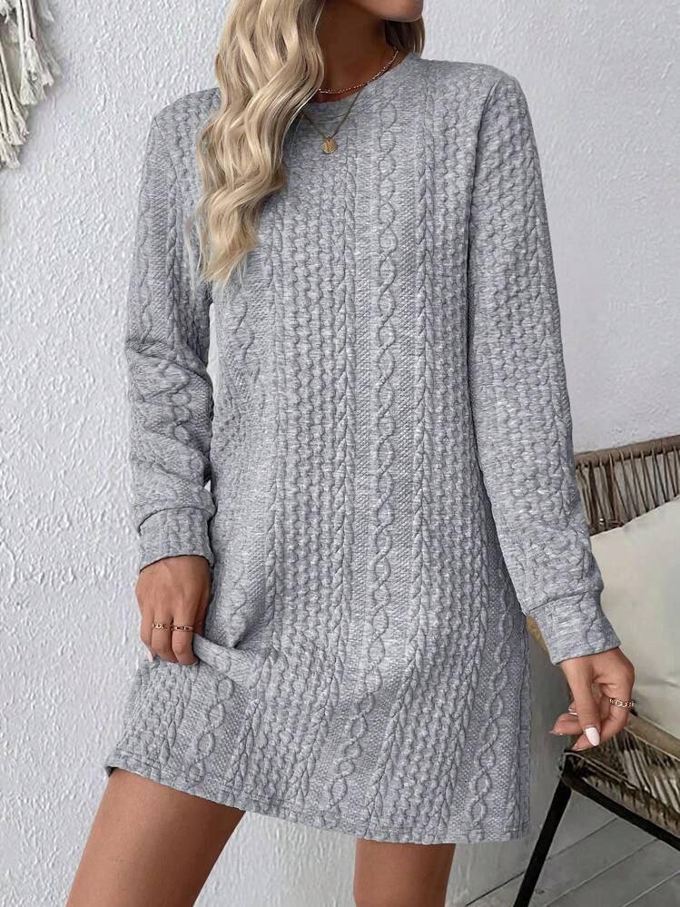 Ta szara melanżowa sukienka dresowa jest nie tylko wygodna, ale również bardzo stylowa. Ma okrągły dekolt i długi rękaw, dzięki czemu można nosić ją na wiele różnych sposobów.