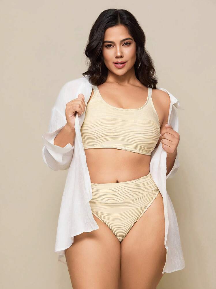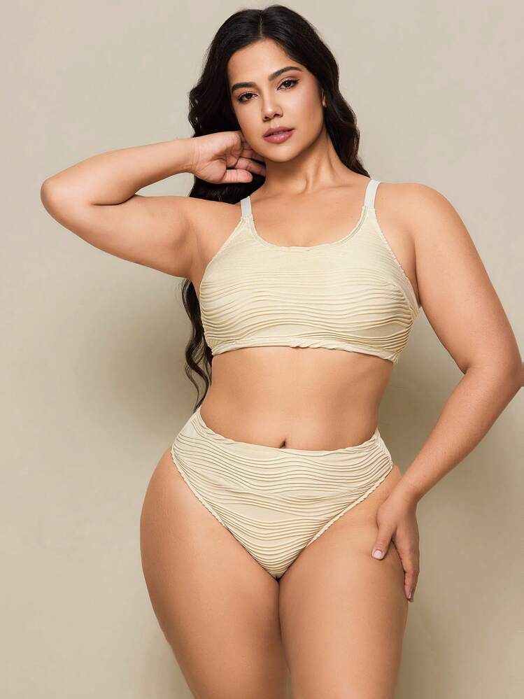 Ecru teksturowany strój dwuczęściowy (1XL)