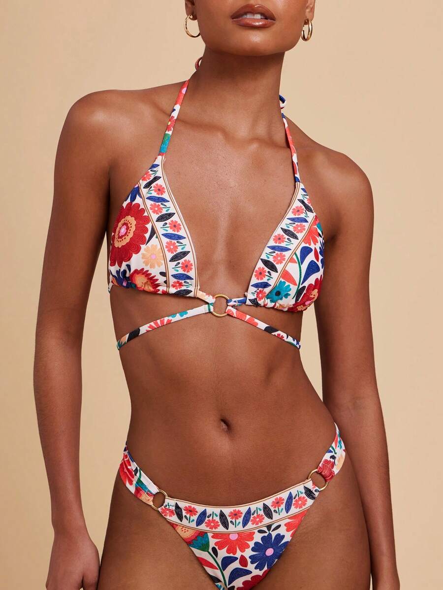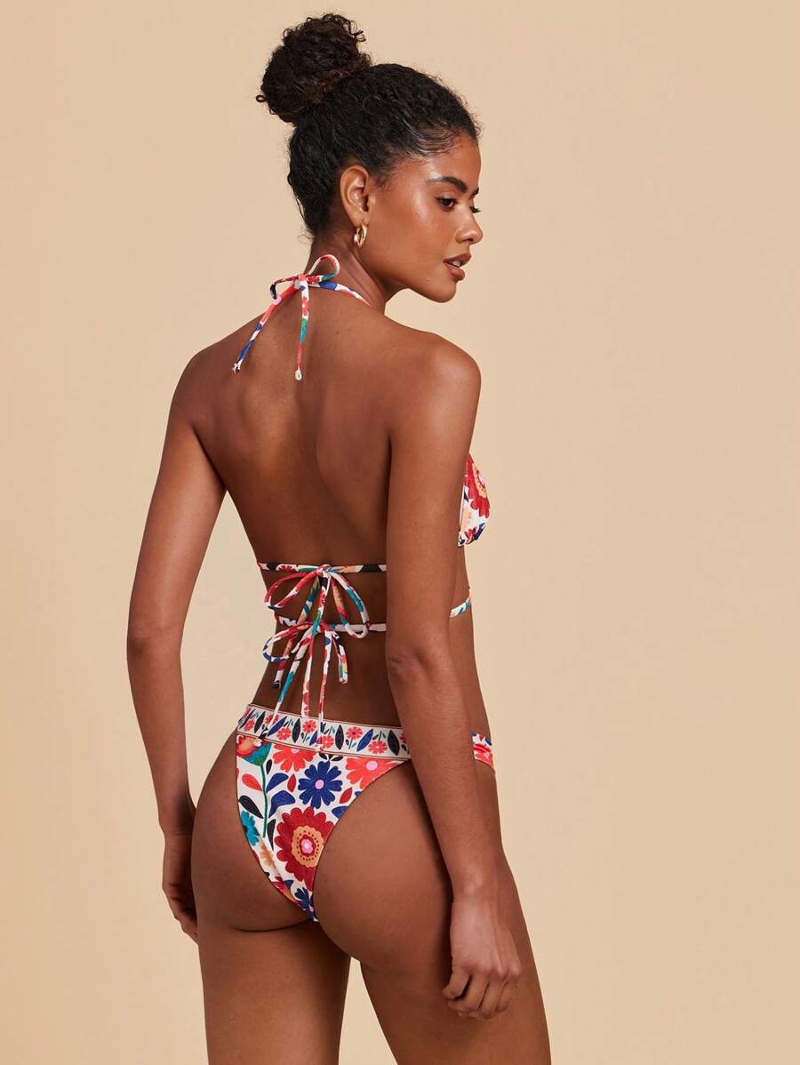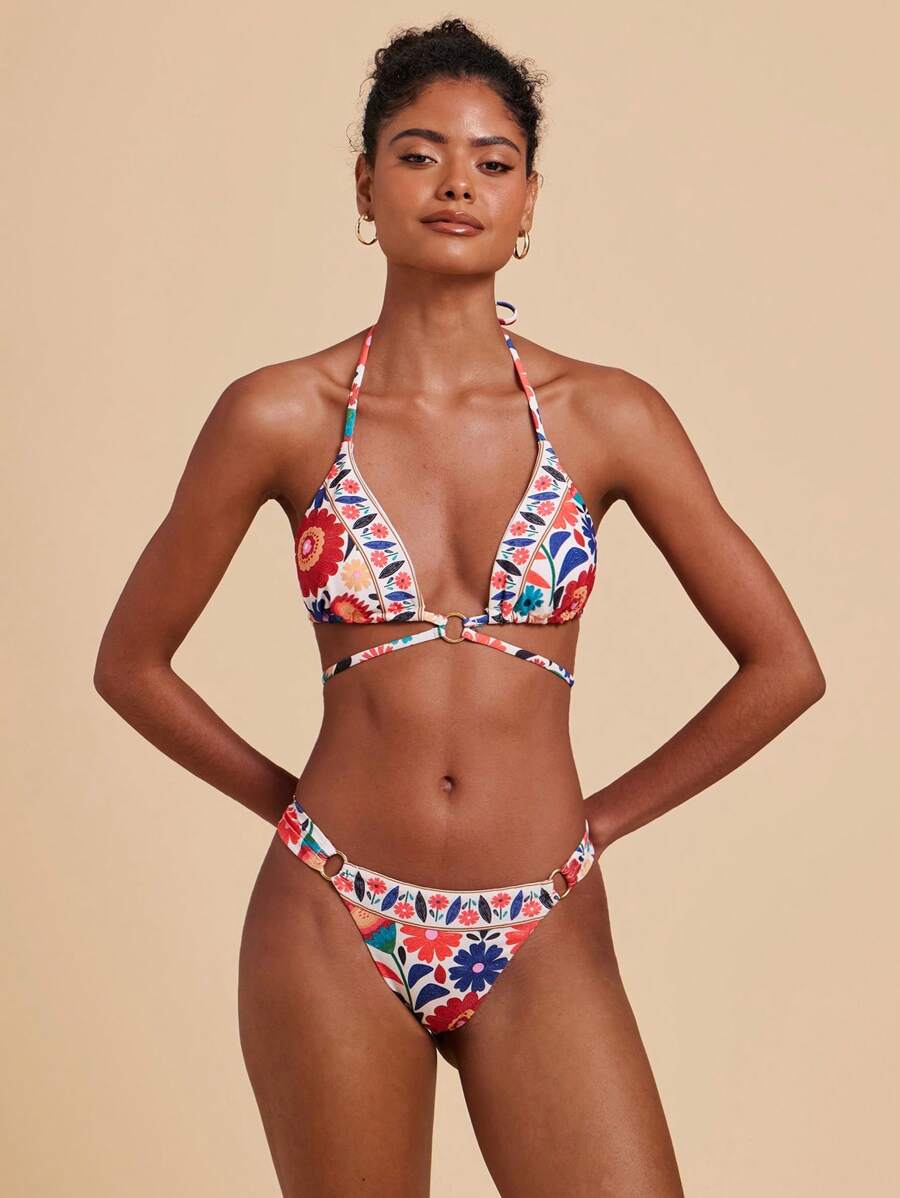 Biały strój kąpielowy kolorowy wzór (L)