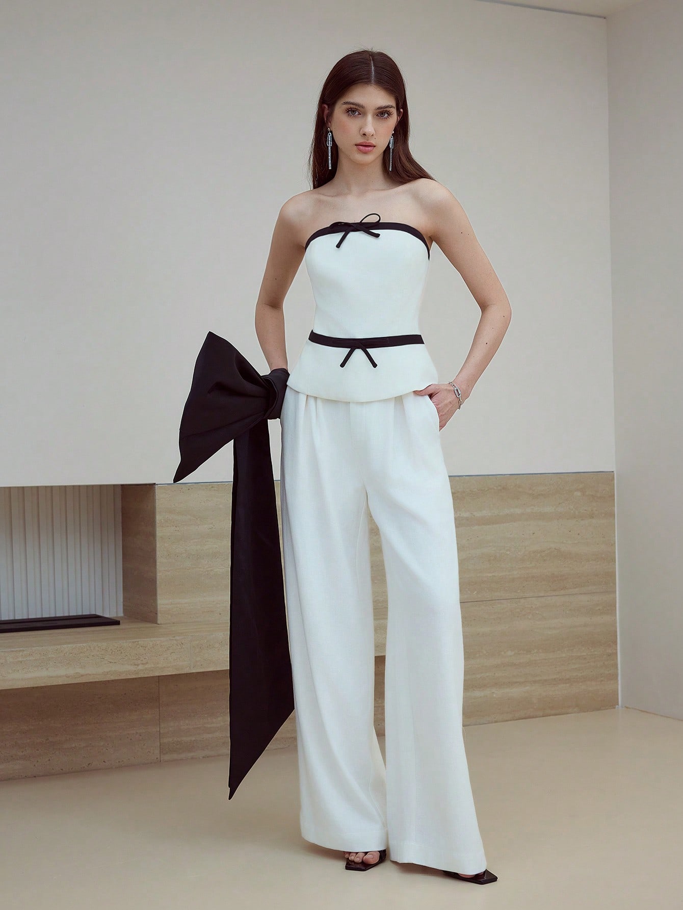Śmietankowy top kontrastowe wstawki (S)
