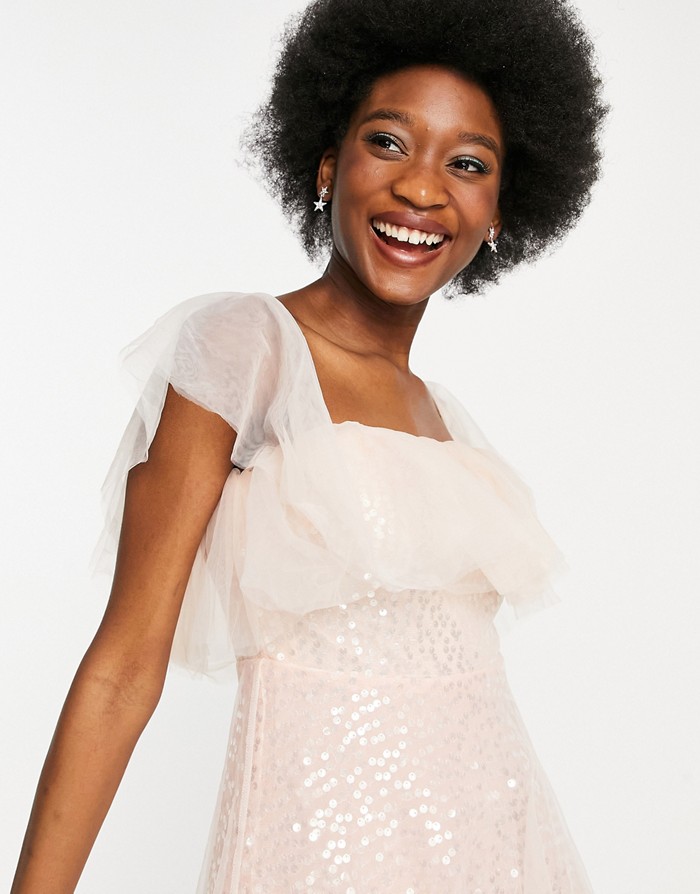 JASNORÓŻOWA ZDOBIONA SUKIENKA (44)