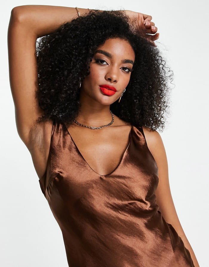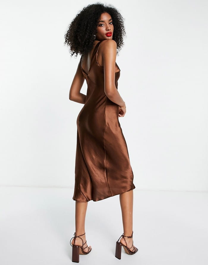 Brązowa satynowa sukienka v neck (38)