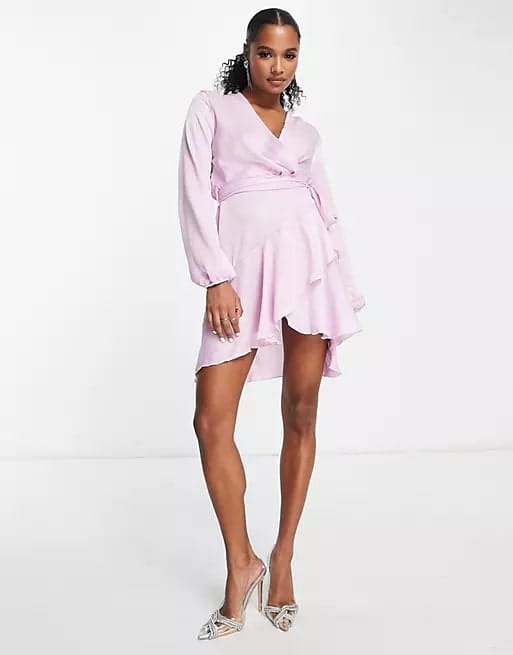 Liliowa suknia mini (40)