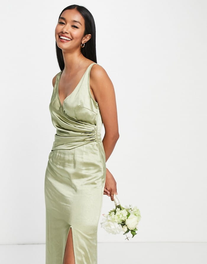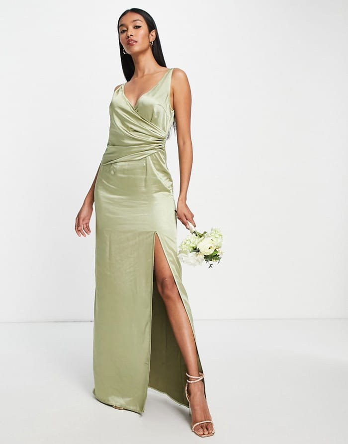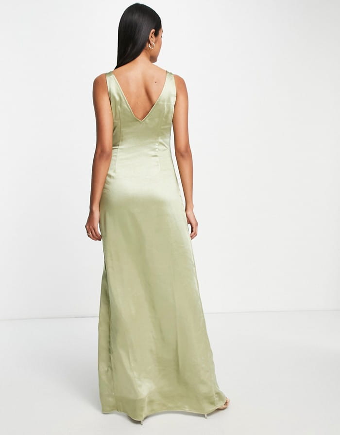 Satynowa oliwkowa sukienka maxi (38)
