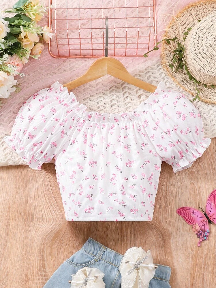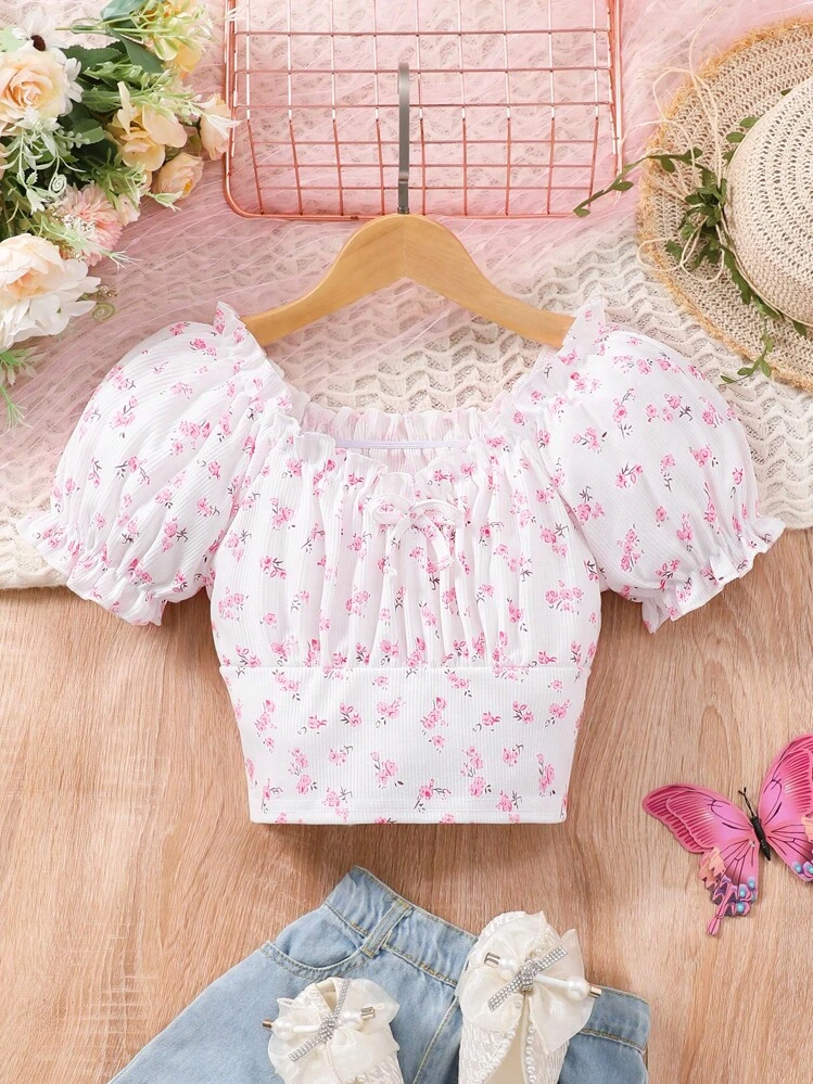 Biała bluzka wzór kwiaty (8L)