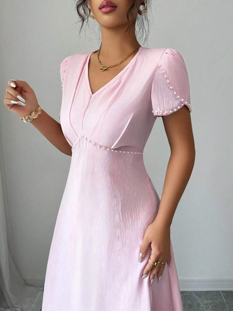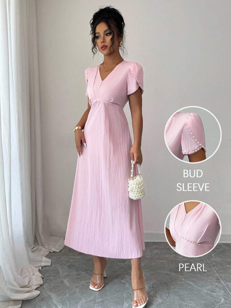 Różowa sukienka midi perły (S)