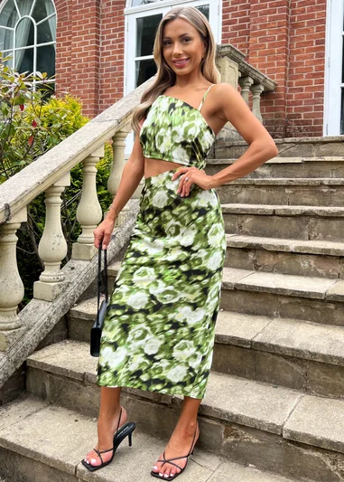 Satynowa sukienka cut out wzór (42)