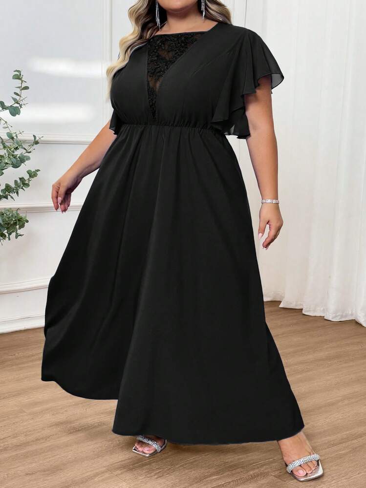 Elegancka czarna sukienka maxi z delikatną koronką to idealny wybór na ważne okazje. Dekolt w kształcie kwadratu i krótkie rękawy dodają jej uroku. Doskonale podkreśli figurę i sprawi, że poczujesz się pewna siebie.