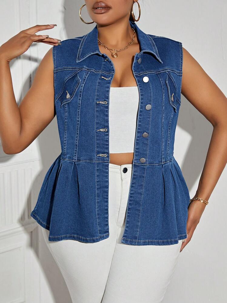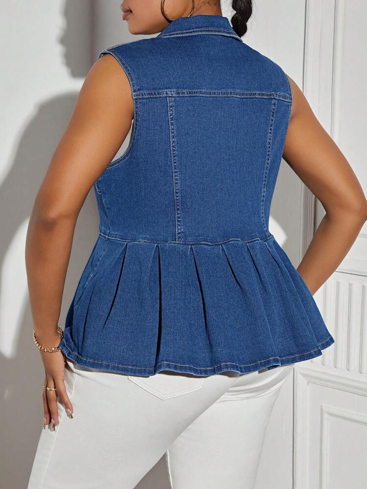 Niebieska jeansowa koszula bez rękawów (4XL)