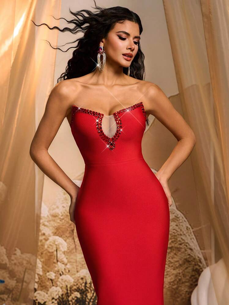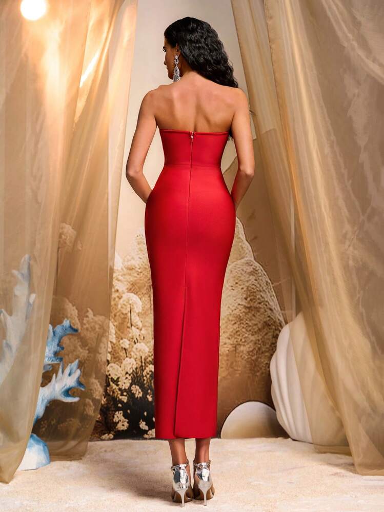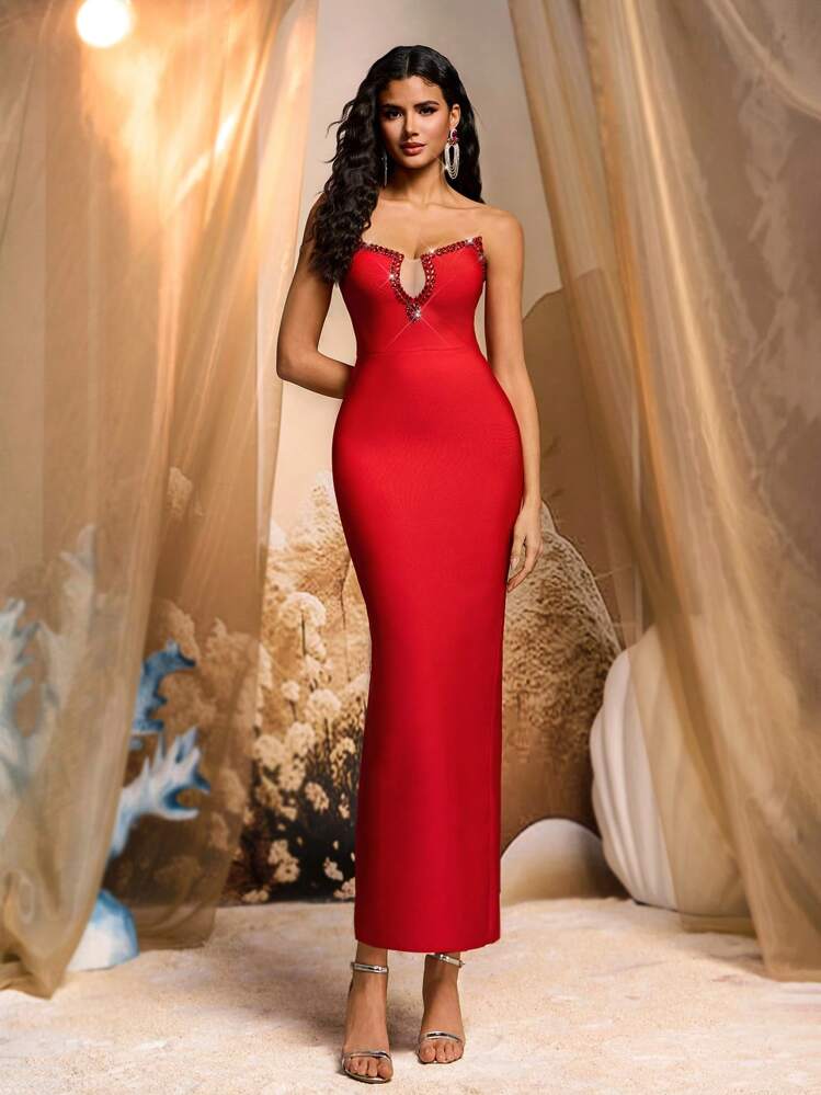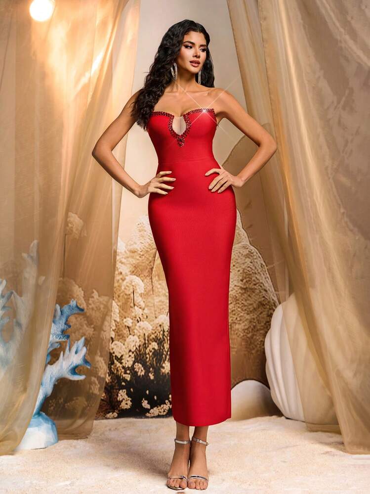 "Elegancka czerwona sukienka z odkrytymi ramionami to must-have każdej modnej kobiety. Idealna na wieczorne wyjścia, podkreśla kobiece kształty dzięki kobiecemu krojowi i dopasowanemu fasonowi. Bez rękawów i w kolorze czerwonym, będzie świetnym wyborem na każdą okazję."