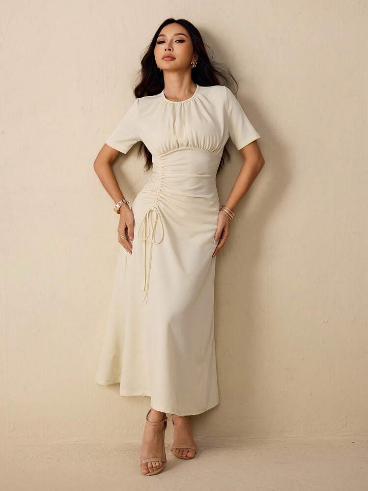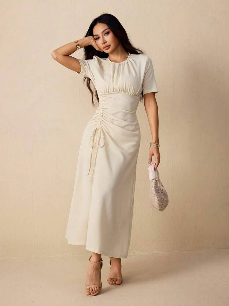 Żółta sukienka krótki rękaw to idealna opcja dla osób lubiących energetyczne kolory. Dekolt w kształcie okrągłym dodaje jej klasycznego charakteru. Krótkie rękawy sprawiają, że jest to nie tylko stylowa, ale także wygodna propozycja na ciepłe dni.
