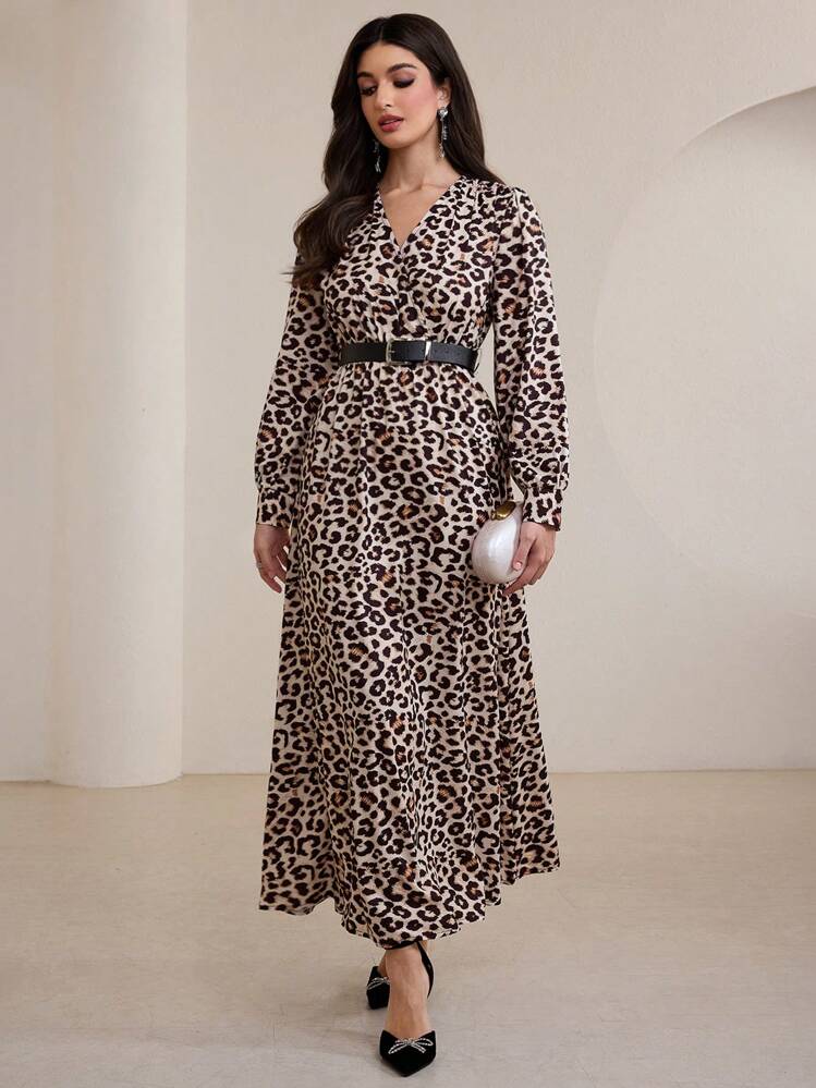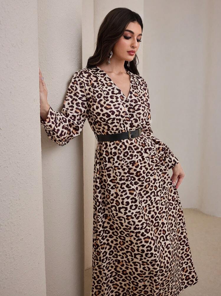 Wzorzysta sukienka midi pasek (L)