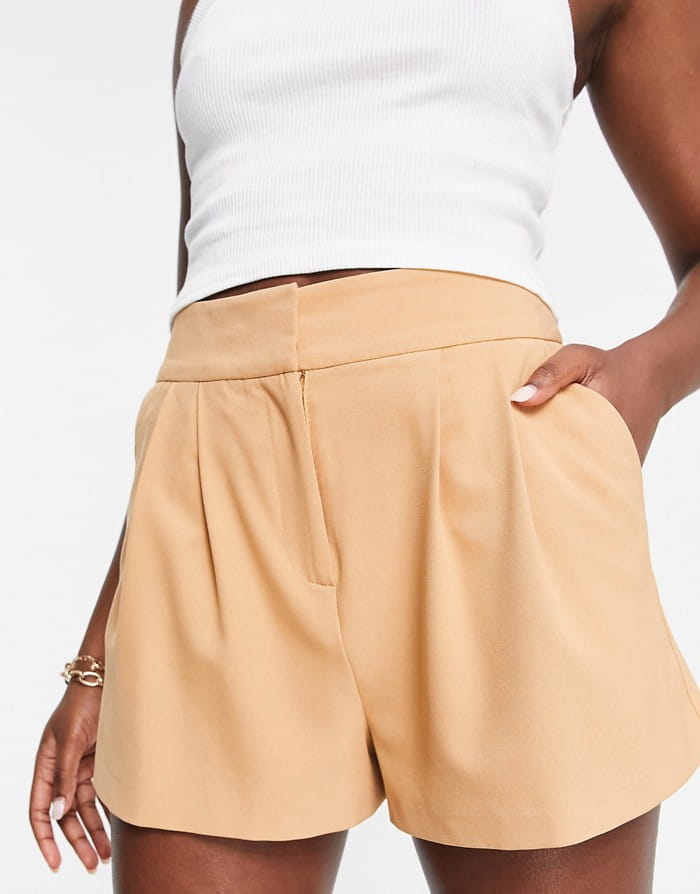 Beżowe szorty zaszewki (38)