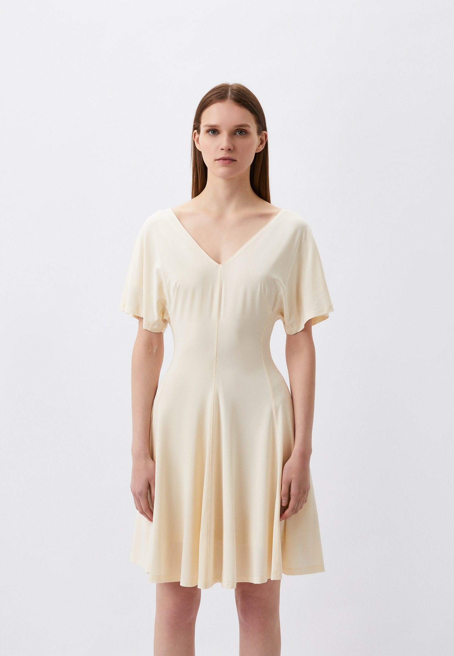 Ecru trapezowa sukienka (44)