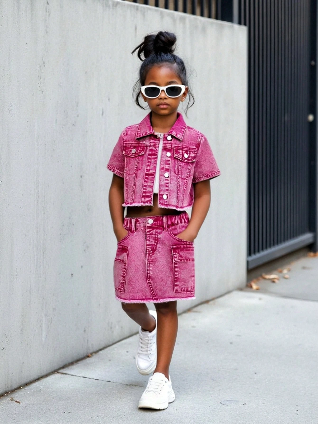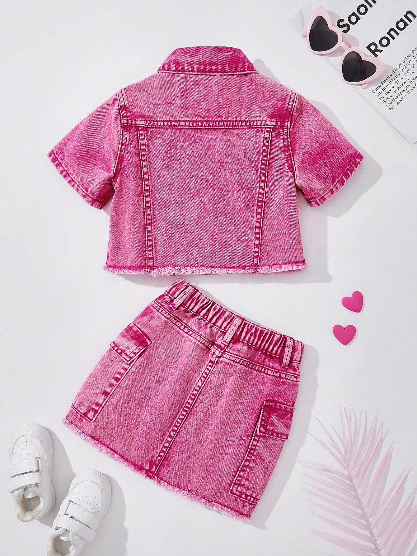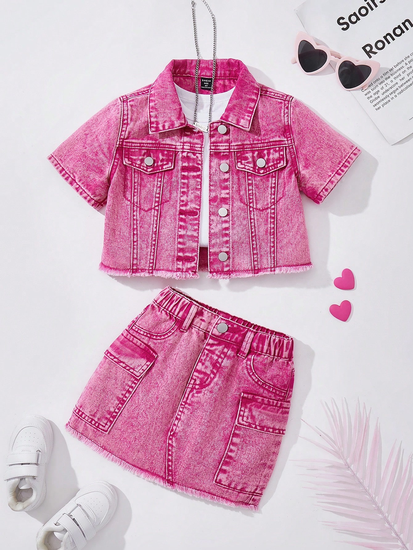 Różowy komplet spódnica kurtka (6L)
