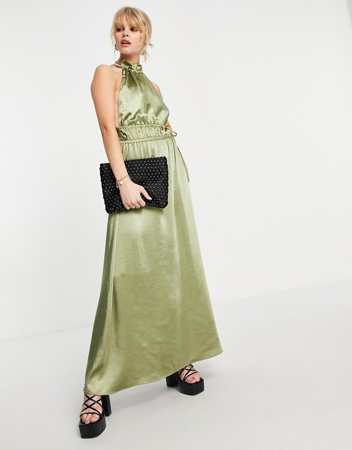 Satynowa sukienka oliwkowa (40)