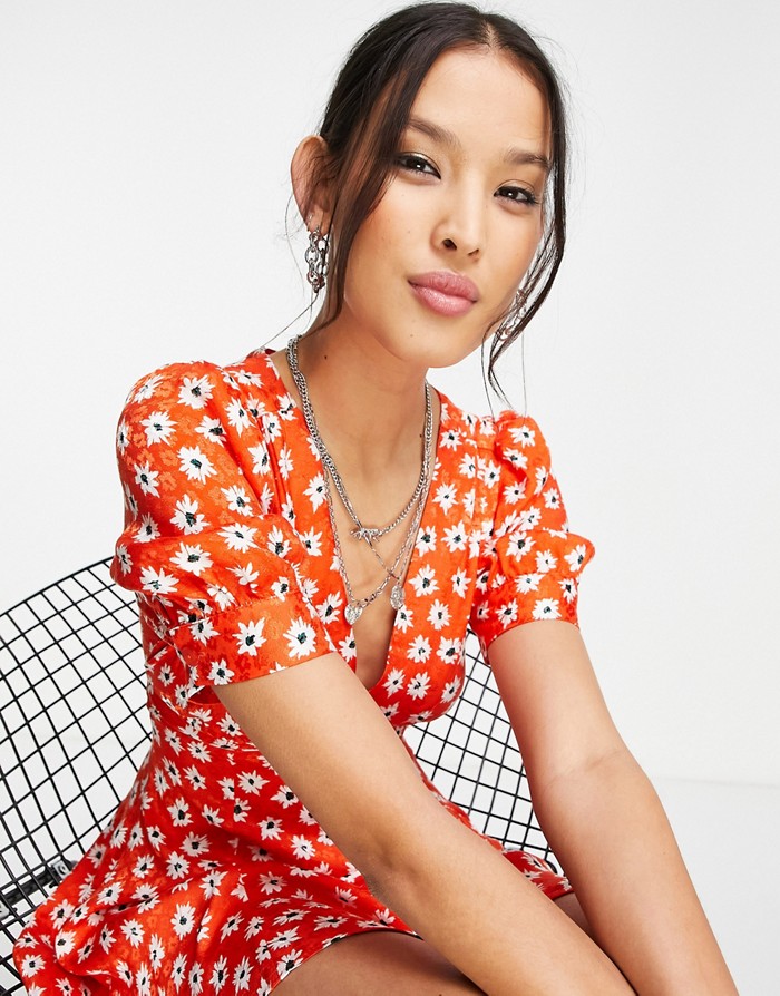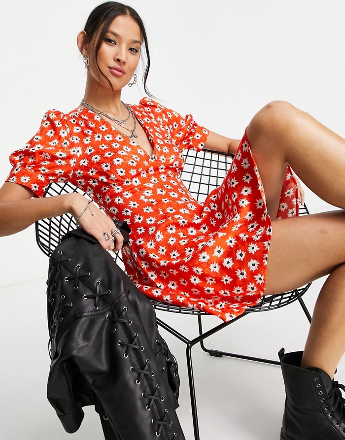 CZERWONA SUKIENKA V NECK FLORAL PRINT (38)