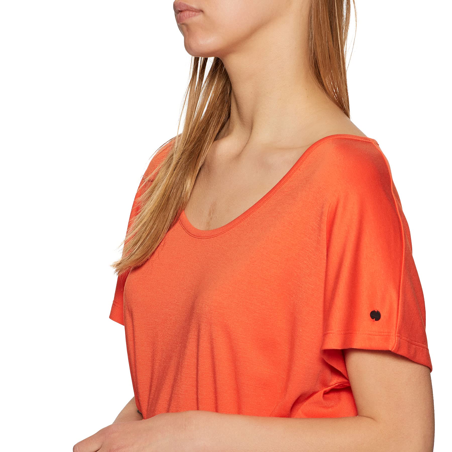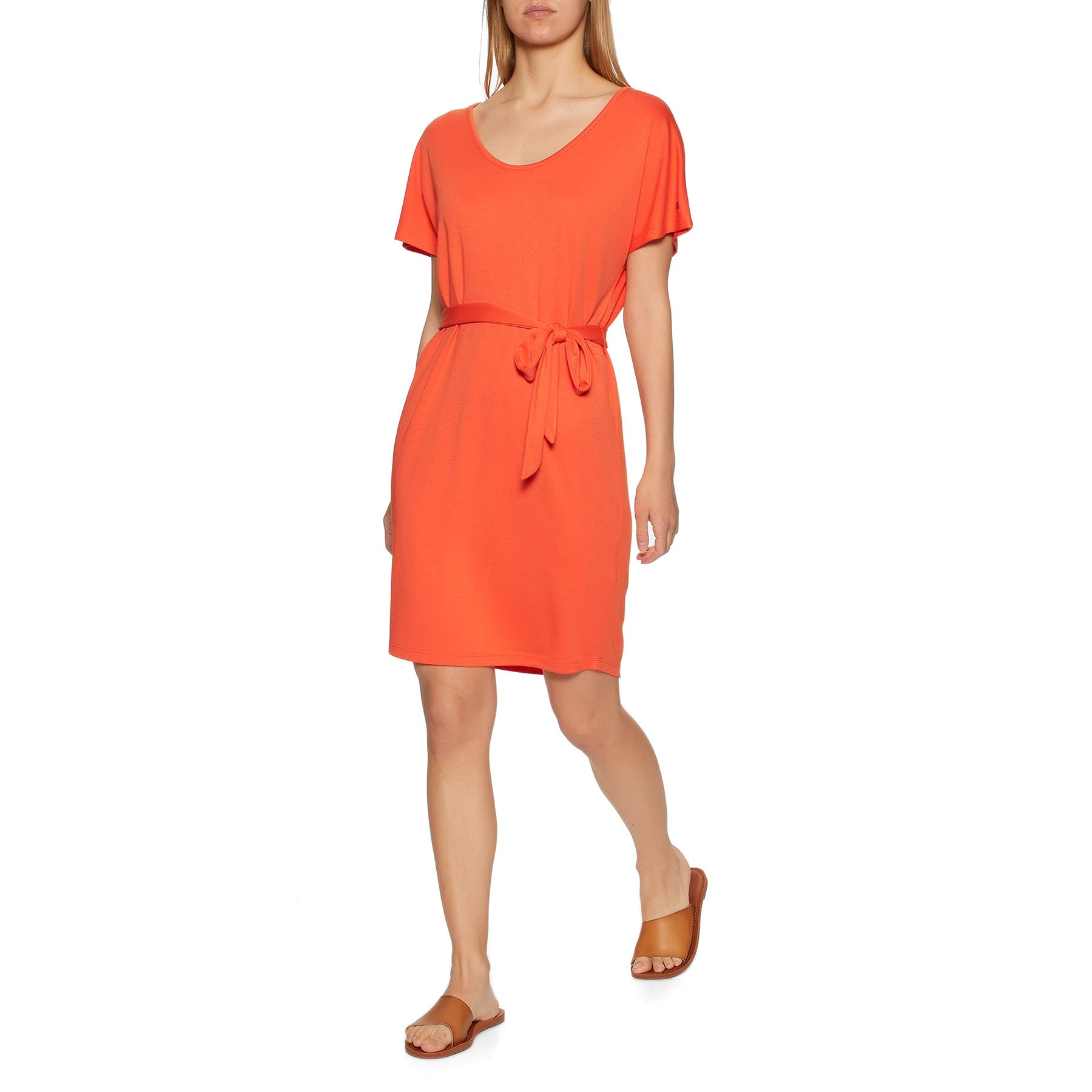 Elegancka sukienka mini w kolorze pomarańczowym z dekoltem typu serek. Wykonana z wysokiej jakości materiału, ozdobiona paskiem w pasie. Idealna na letnie wieczory lub wyjścia w ciepłe dni. Krótkie rękawy dodają jej uroku.