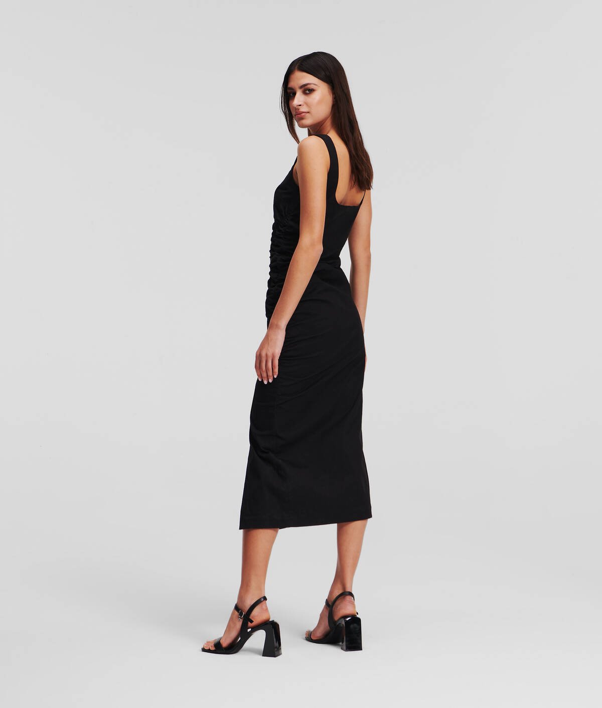 Czarna sukienka midi rozcięcie (36)