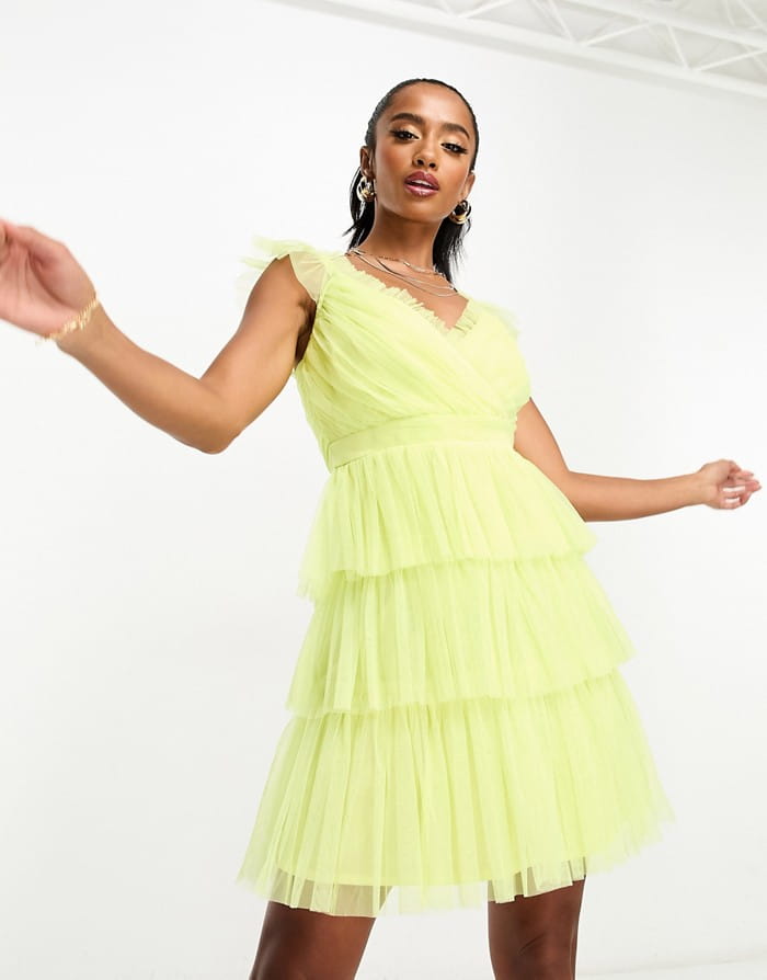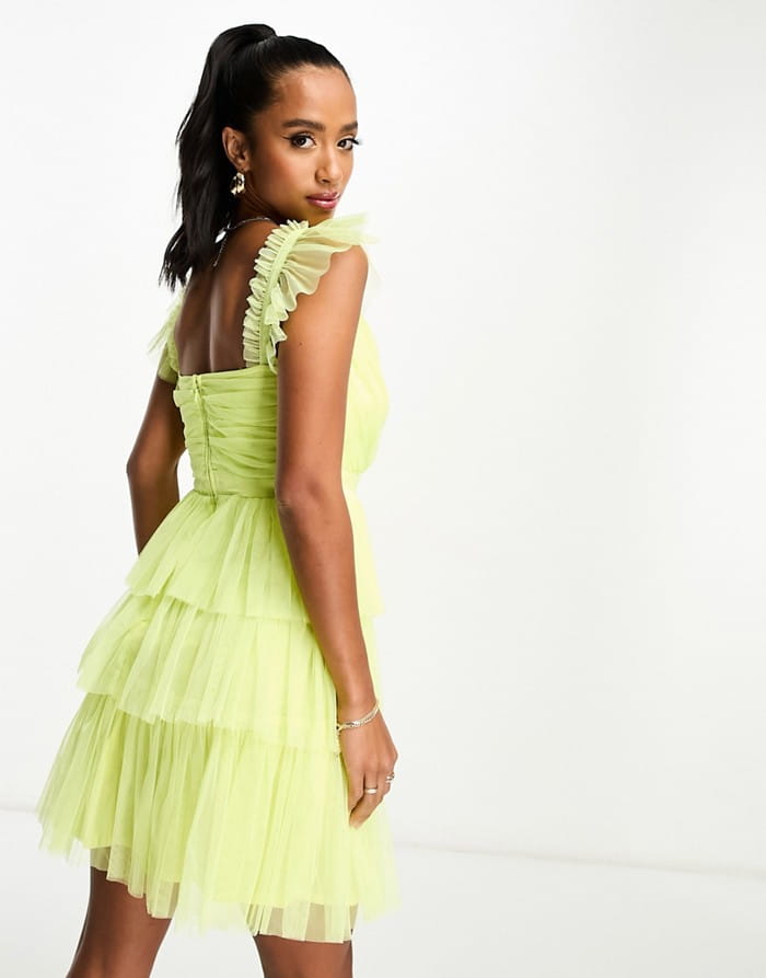 Limonkowa sukienka falbany (34)