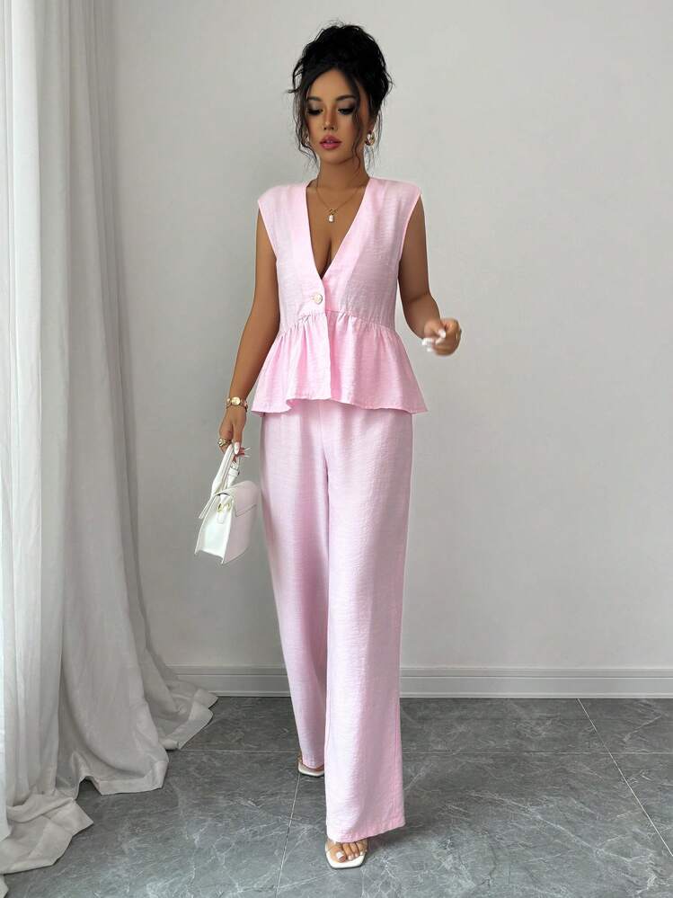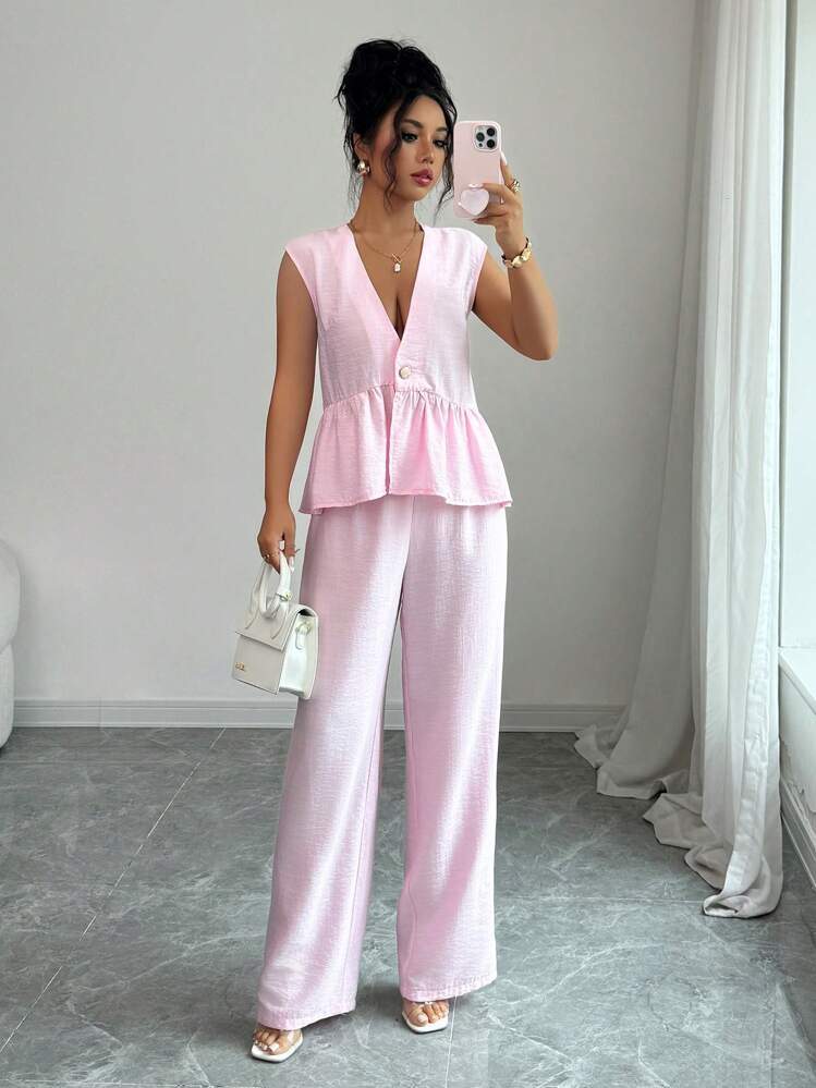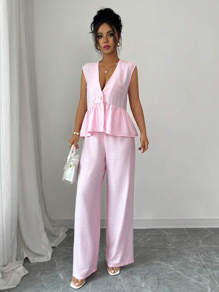 Różowy komplet spodnie bluzka (S)