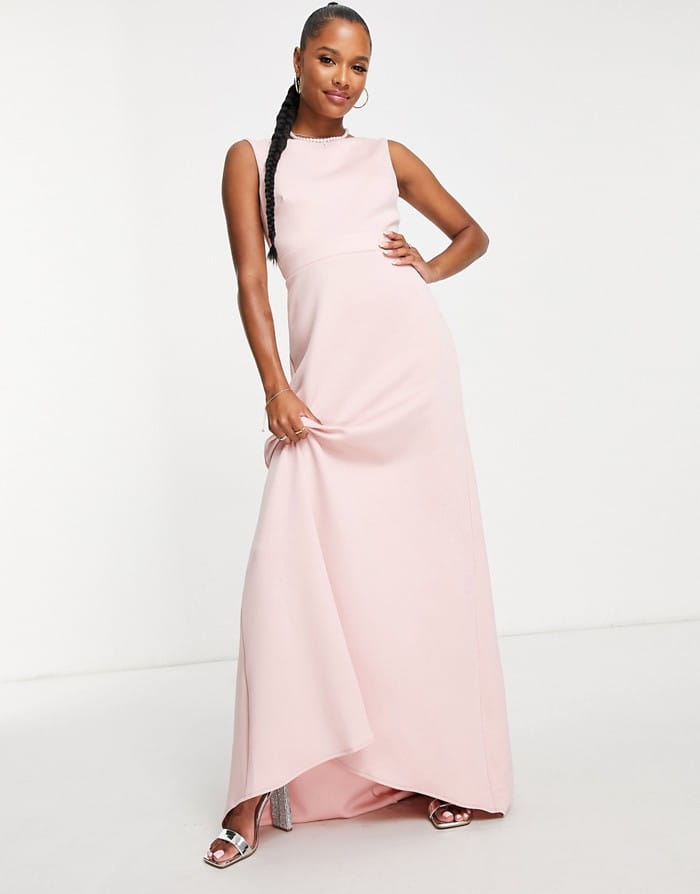 Różowa maxi sukienka kokarda (42)
