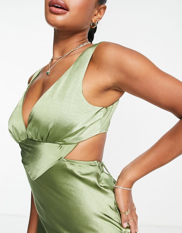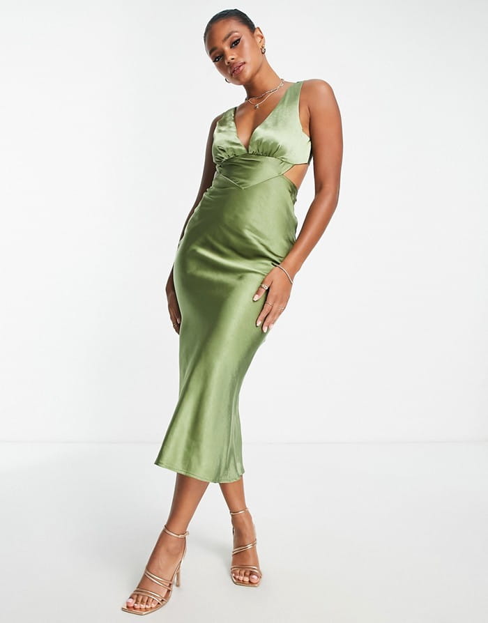 Zielona satynowa sukienka midi (42)