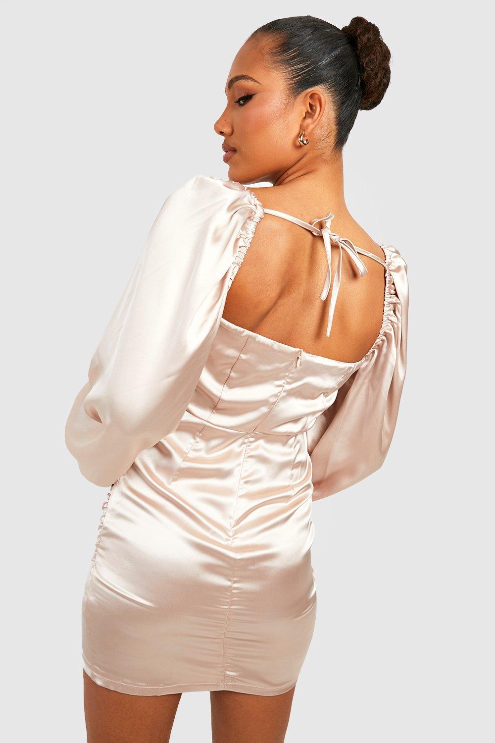 Satynowa beżowa sukienka (40)