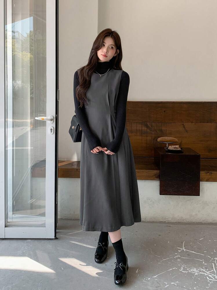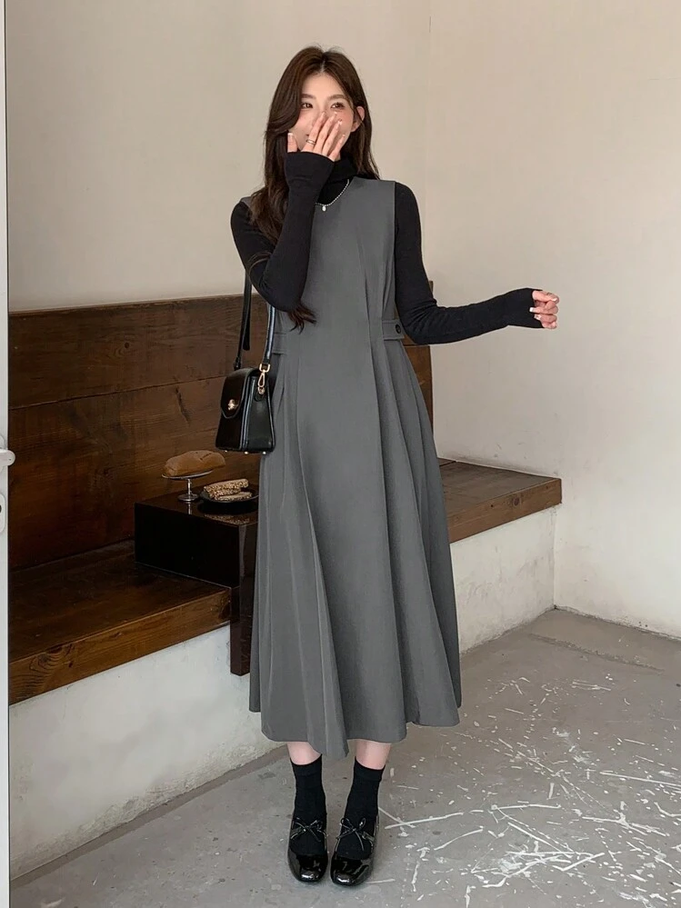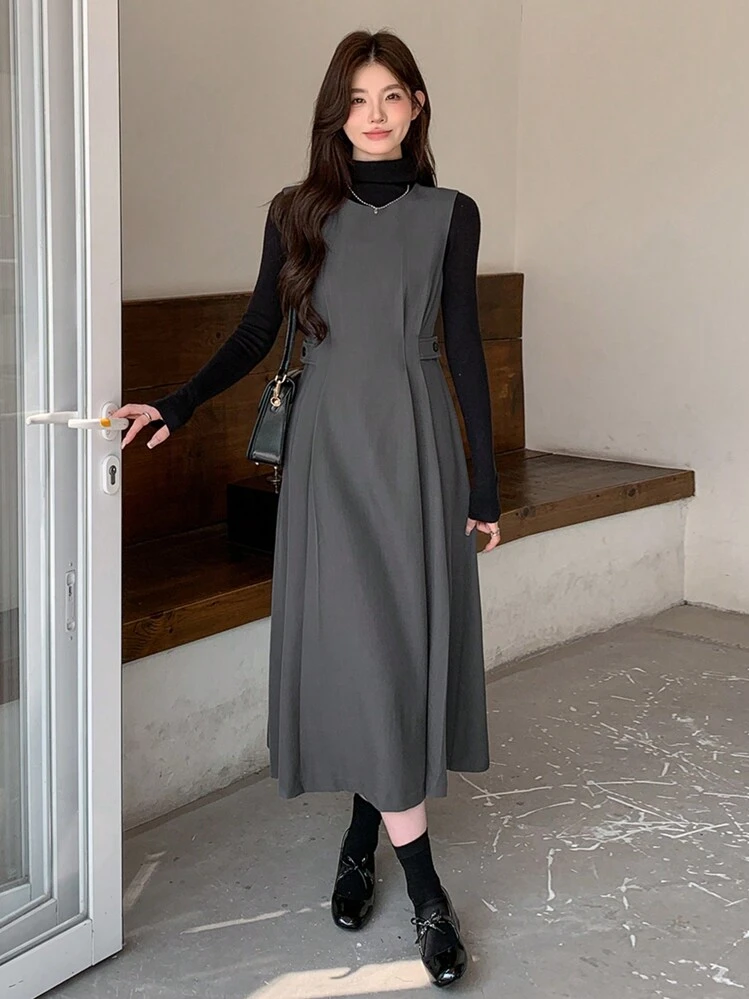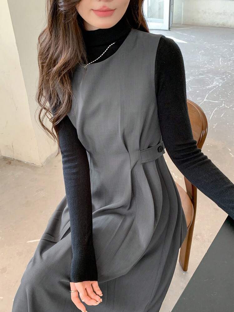 "Elegancka i wygodna sukienka w kolorze szarym, bez rękawów, z okrągłym dekoltem. Idealna na wiele okazji, dodająca szyku i stylu. Doskonały wybór dla kobiet ceniących wygodę i ponadczasowe wzornictwo."