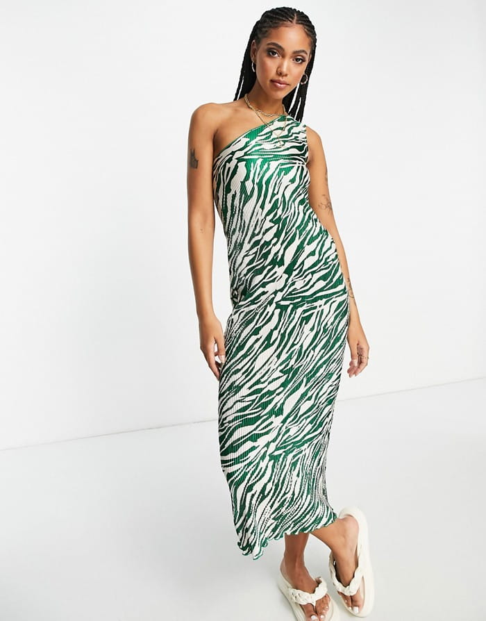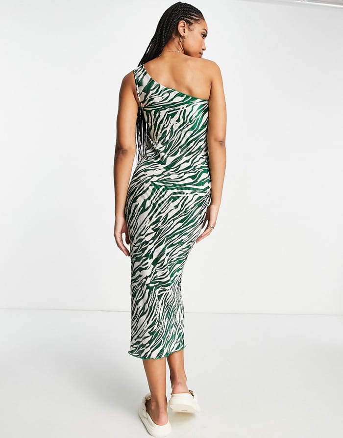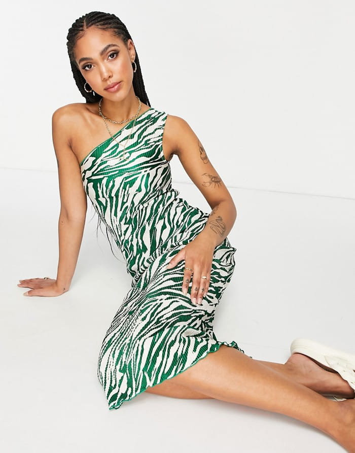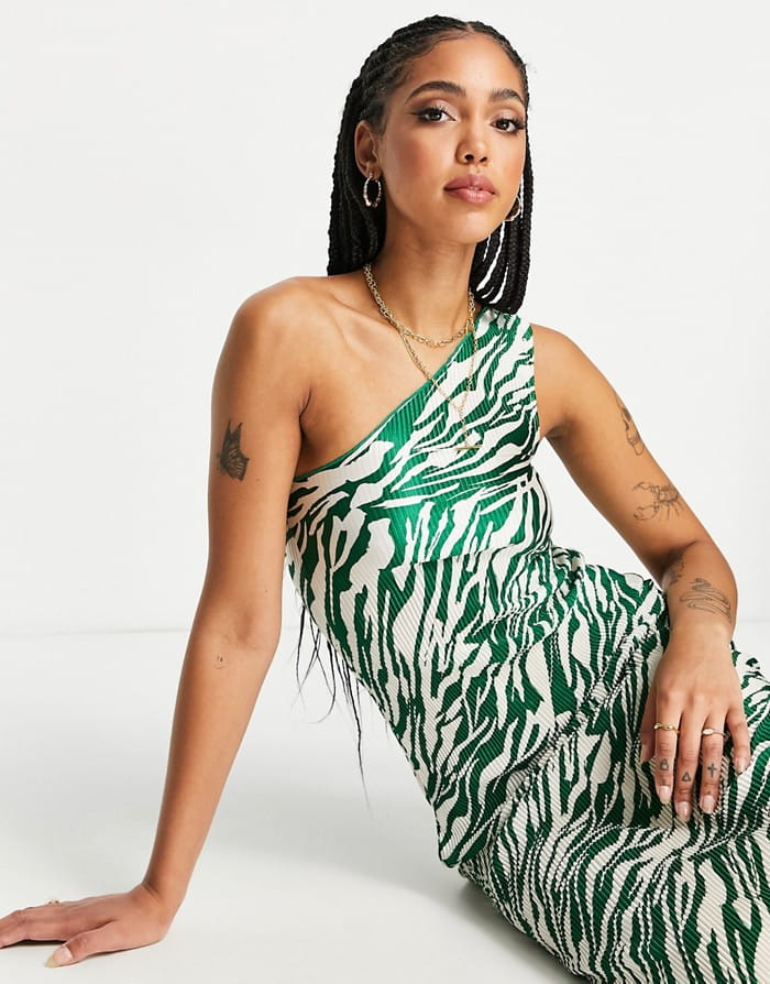 Modna i efektowna dwukolorowa sukienka z plisowanym wzorem. Dostępna w większości kolorów, posiada asymetryczny dekolt i jest bez rękawów. Idealna na wieloletnie okazje oraz na co dzień.