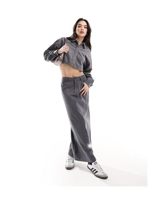 Szara prosta spódnica rozcięcie (44)