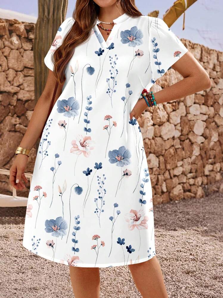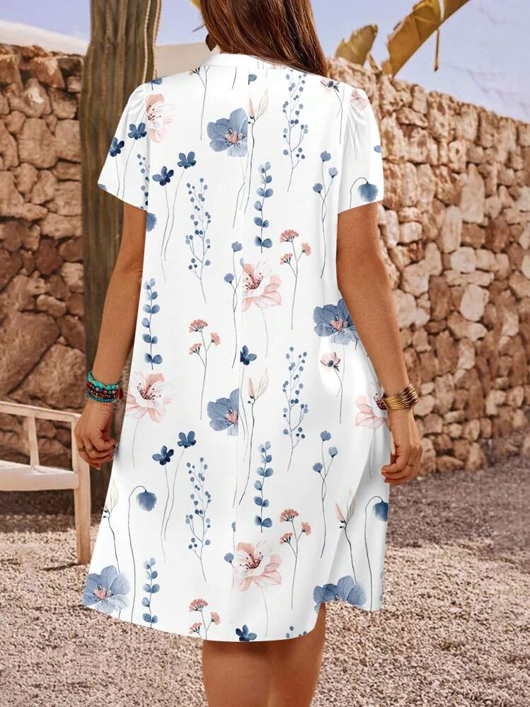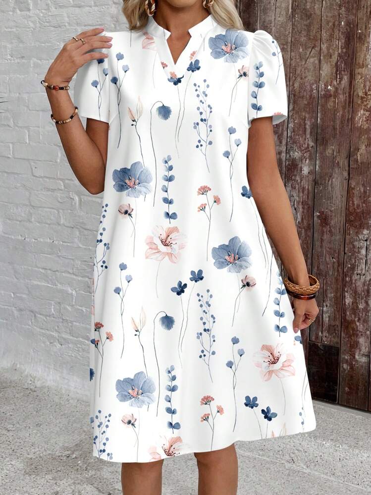 Elegancka biała sukienka z krótkimi rękawami i dekoltem typu serek lub V. Wykonana z wygodnego materiału. Idealna na lato i wiele różnych okazji.