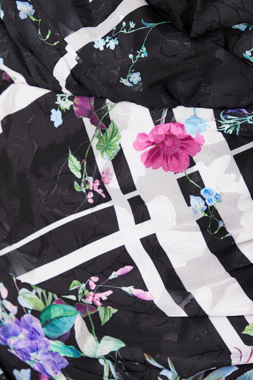 Elegancka, czarna mini sukienka z subtelnie wykończonym wzorem to idealny wybór na wieczorne wyjścia. Kopertowy dekolt oraz długi rękaw dodają jej nuty kobiecości i klasy.