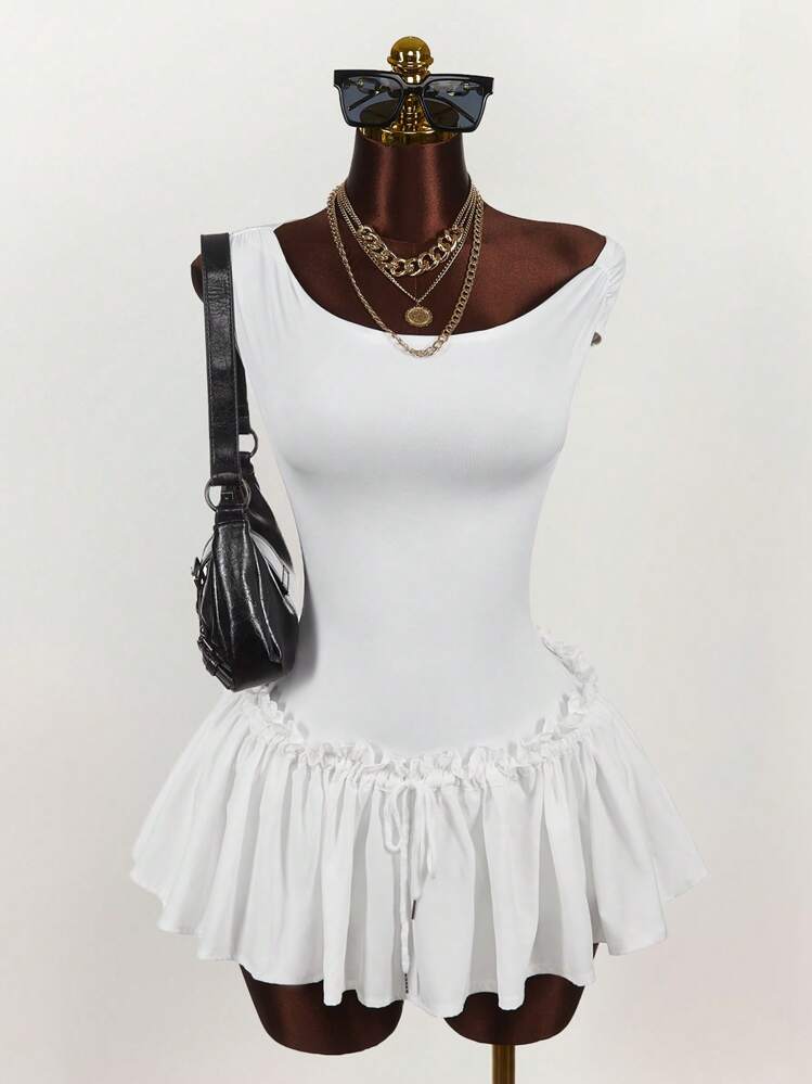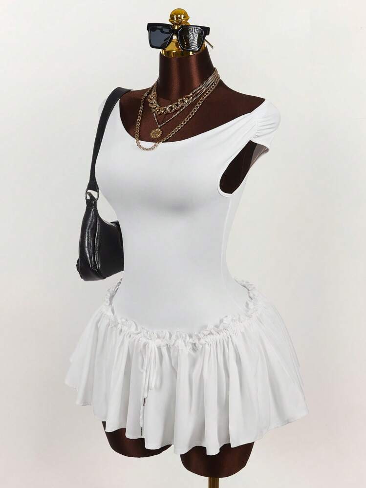 Biała sukienka kombinezon 2w1 w kolorze białym z asymetrycznym dekoltem i krótkim rękawem. Idealna na letnie dni i wieczorne wyjścia. Stylowa i wygodna.