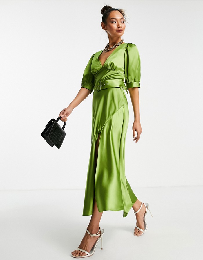 ZIELONA SATYNOWA SUKIENKA PASEK (42)