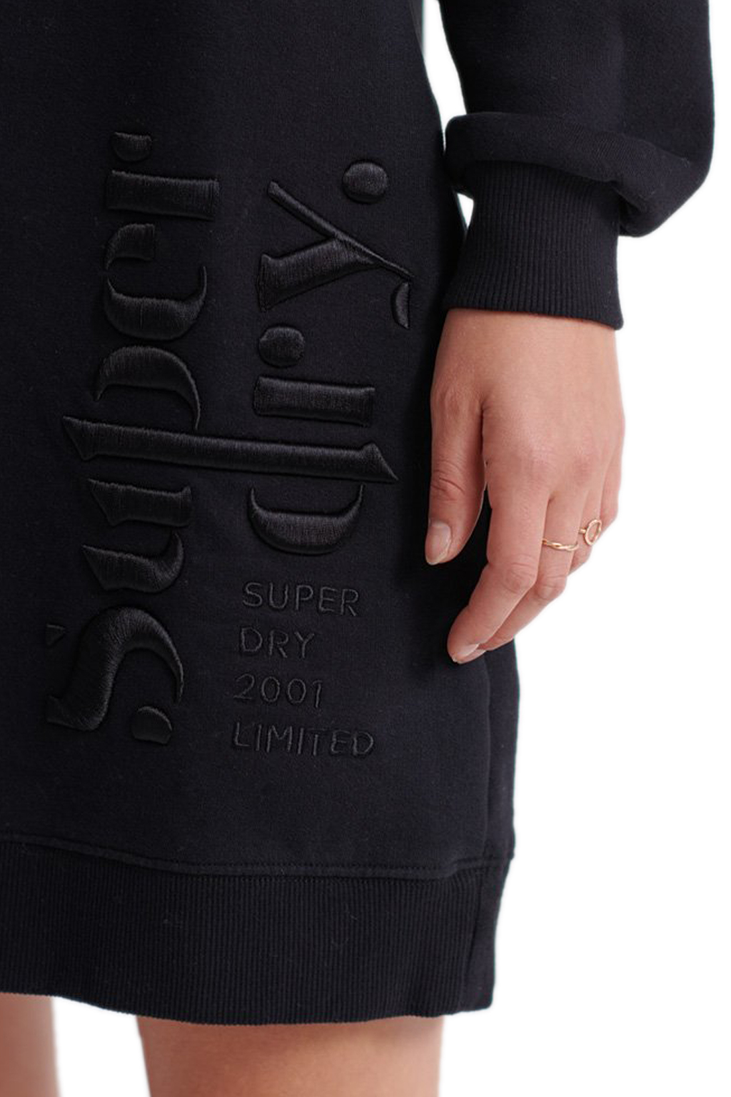 Elegancka i wygodna dresowa sukienka w kolorze czarnym. Posiada hafty, które dodają jej uroku. Dekolt typu półgolf oraz długi rękaw sprawiają, że jest idealna na chłodniejsze dni.