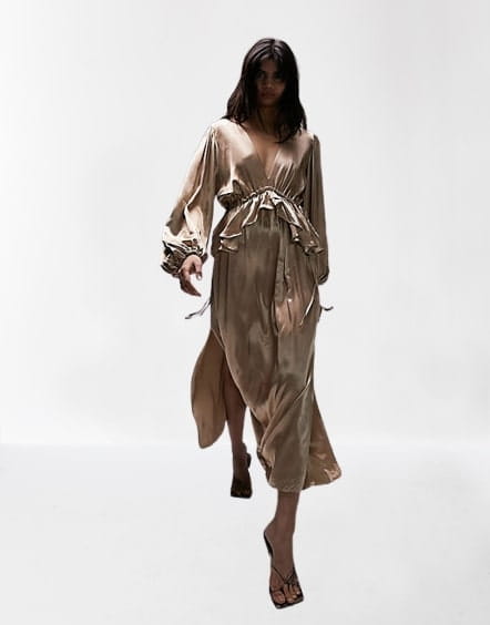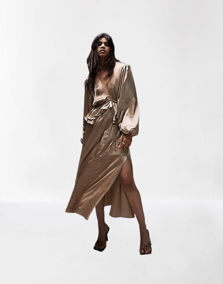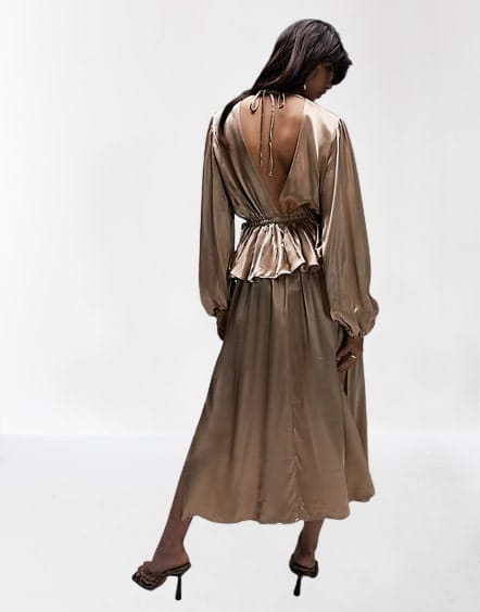 Satynowa sukienka midi rozcięcie (38)
