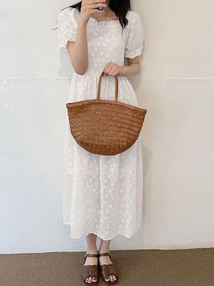 Biała sukienka z krótkimi rękawami i kwadratowym dekoltem to klasyczny i elegancki wybór na każdą okazję. Krótkie rękawy dodają sukience lekkości, a biały kolor idealnie podkreśla letnią atmosferę.