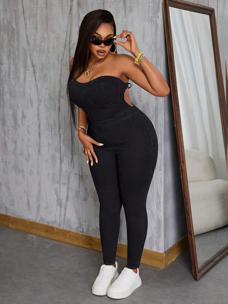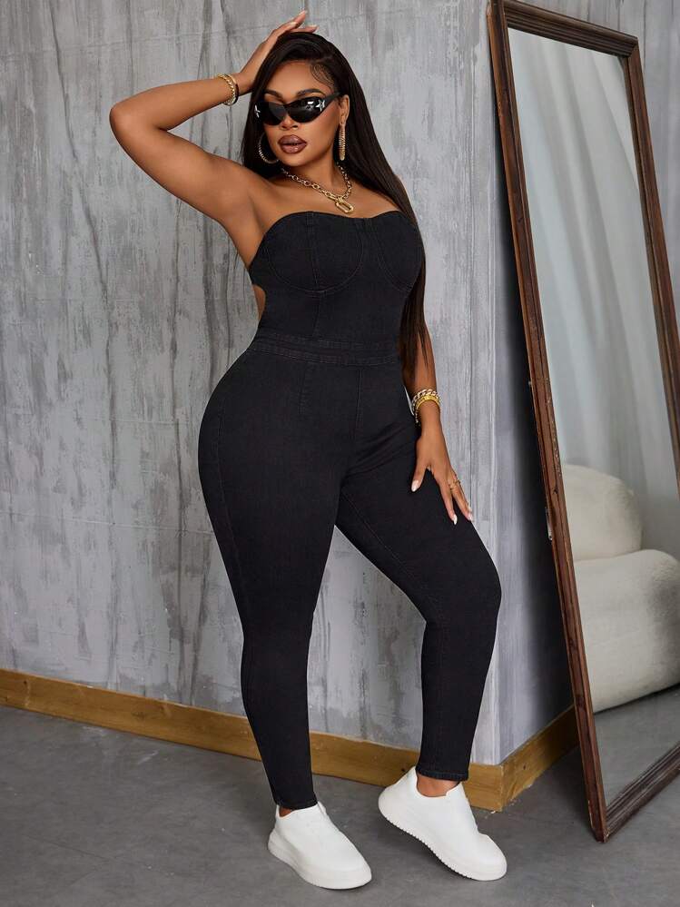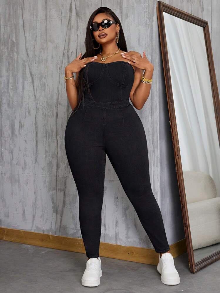 Czarny jeansowy kombinezon (2XL)