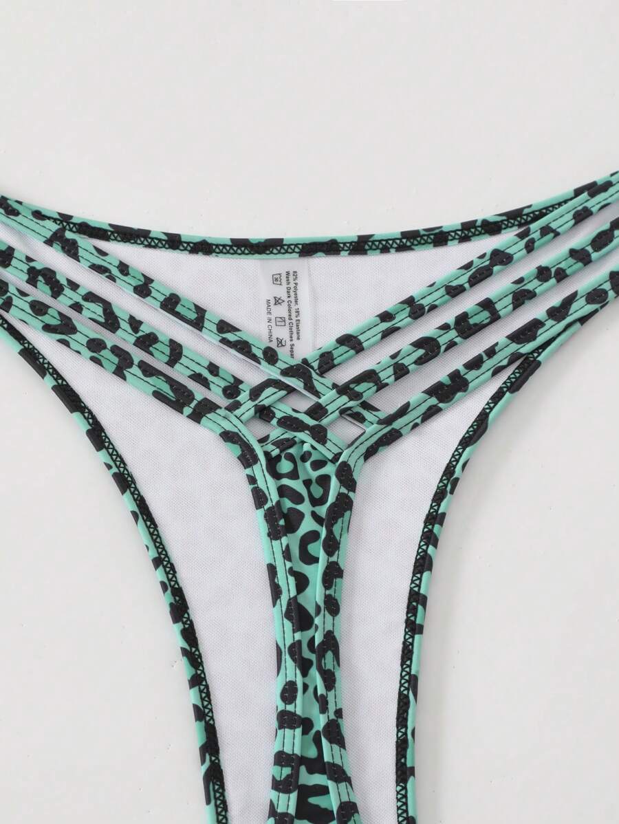 Miętowe stringi bikini wzór (XS)