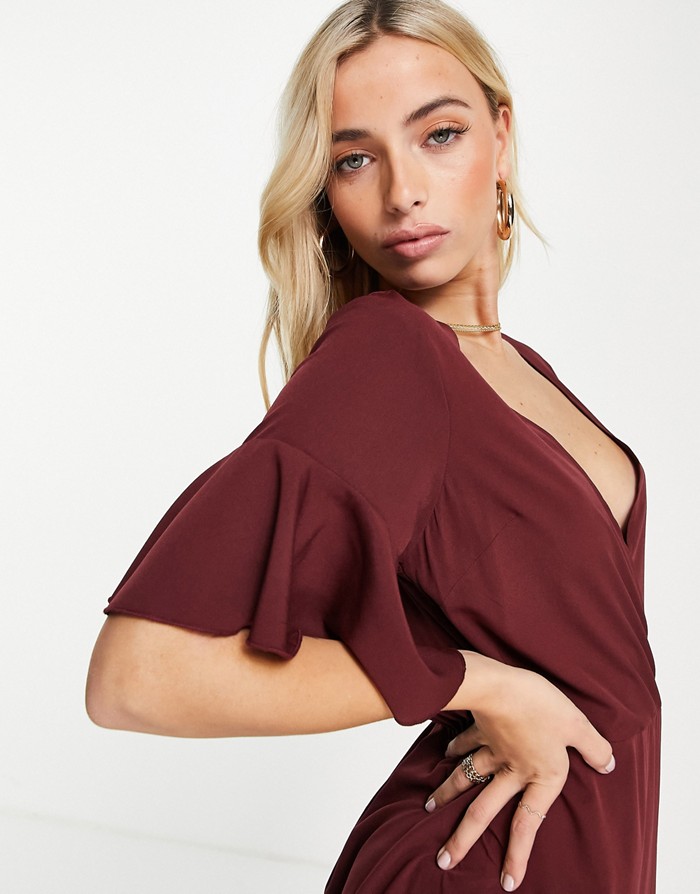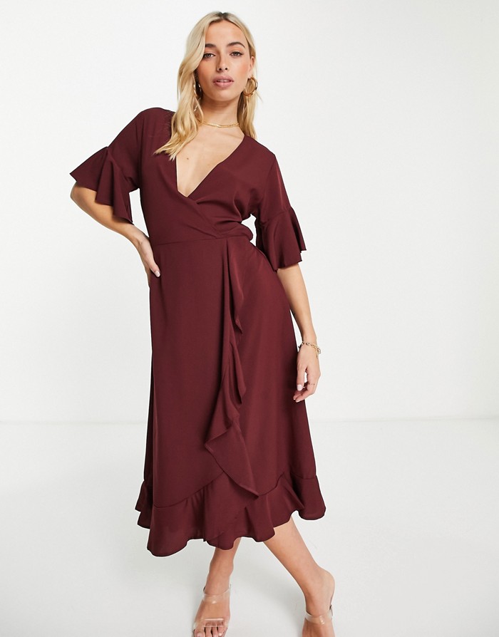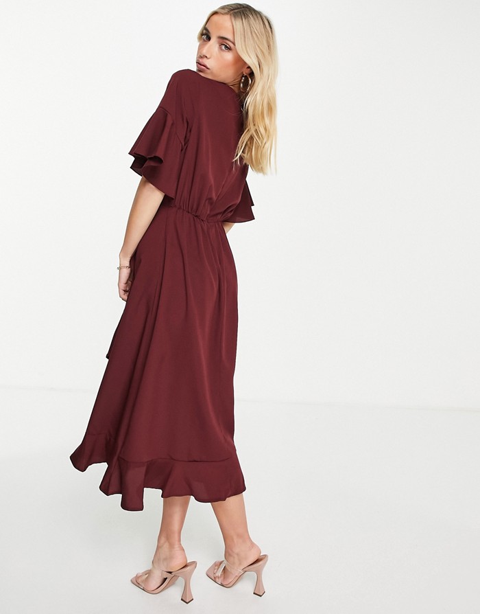 Bordowa midi sukienka falbana (38)