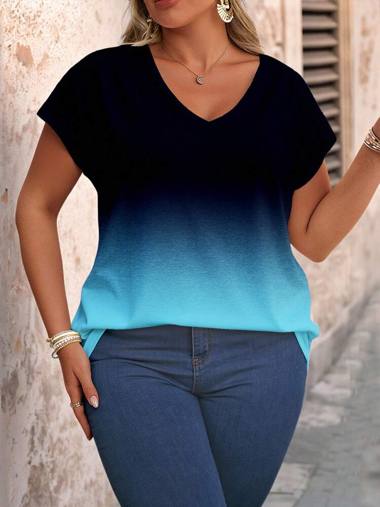 Dwukolorowy t-shirt ombre (4XL)