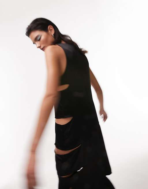Czarna satynowa sukienka cut out (44)