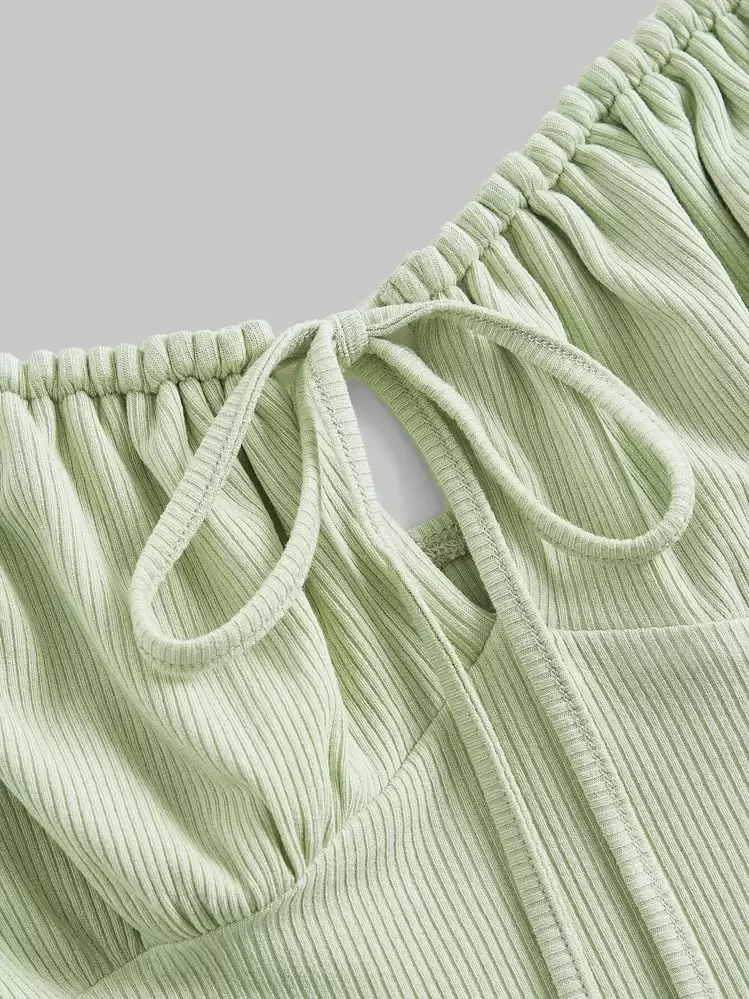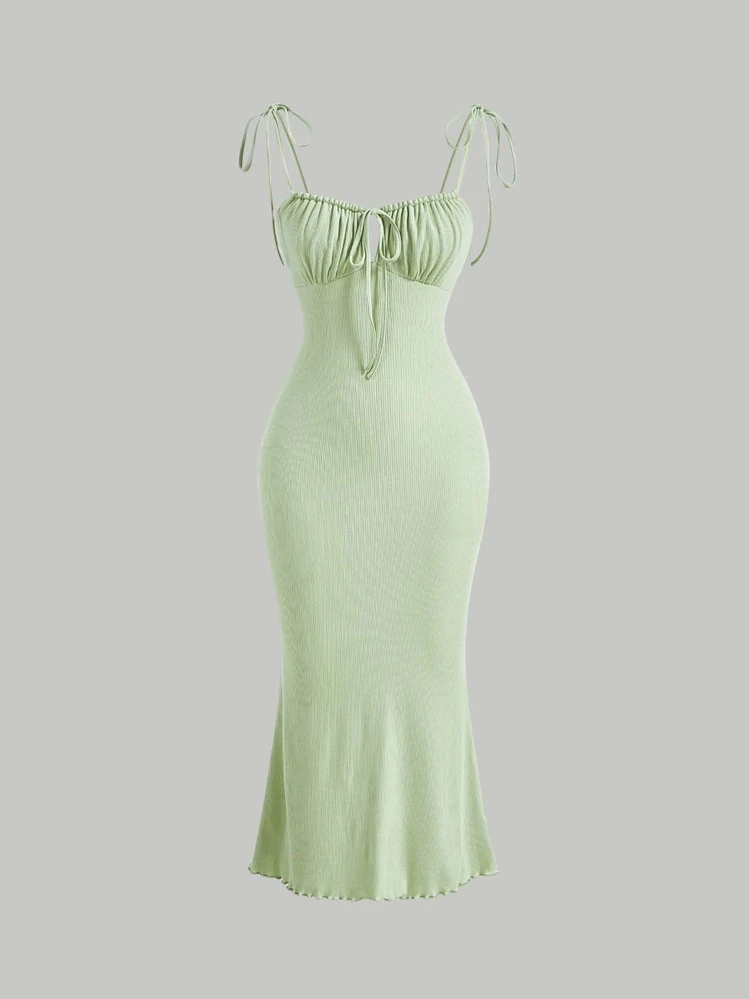 Kusząca zielona sukienka z zygzakowymi paskami, wiązany dekolt i ramiączka. To idealna propozycja na letnie dni, która połaczy wygodę i modny design.