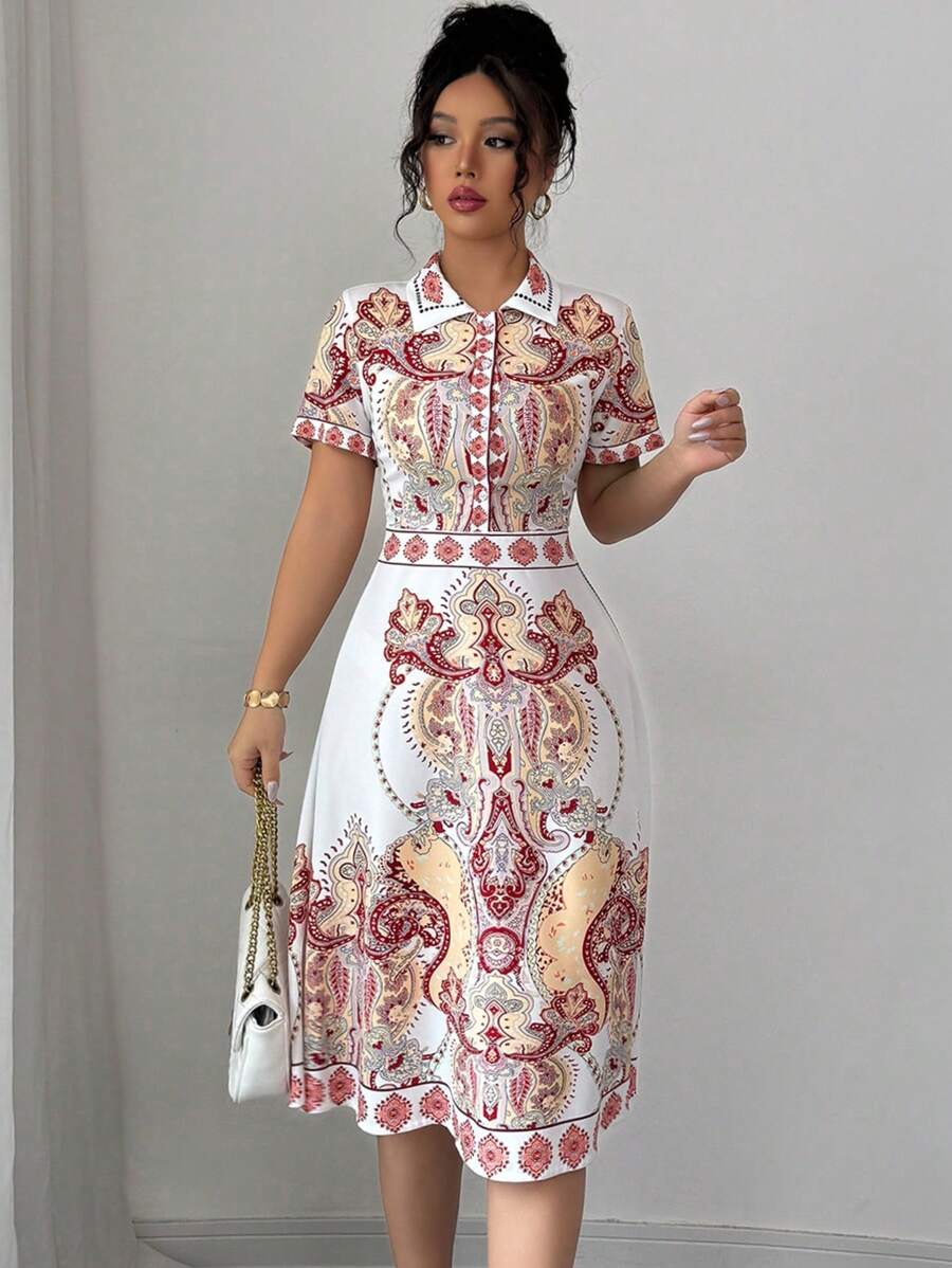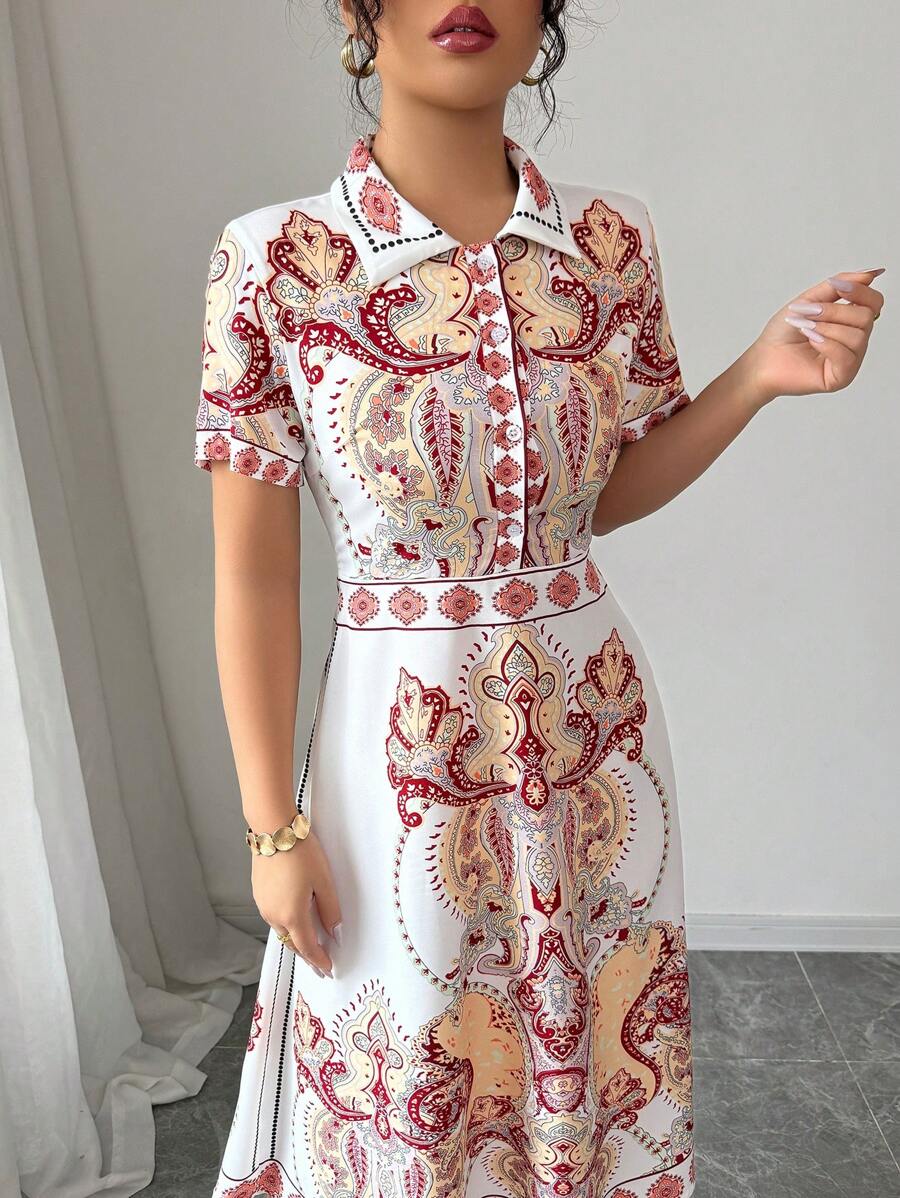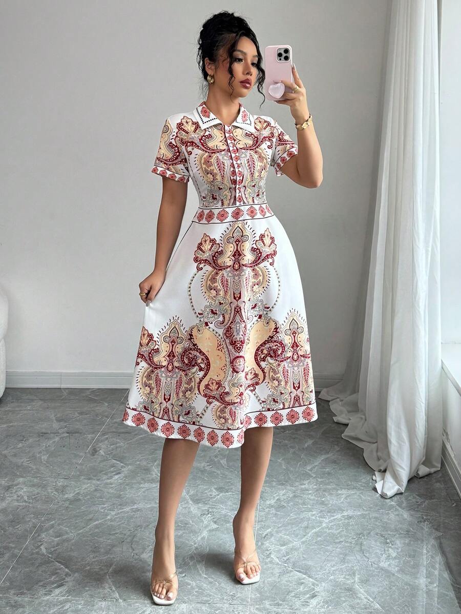 Biała koszulowa sukienka wzór (XS)